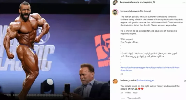Στο διαγωνισμό Arnold Classic (AC) του Αρνολντ Σβαρτσενέγκερ , οι καλύτεροι αθλητές του κόσμου στο body building θα διαγωνιστούν για το χρυσό μετάλλιο. Ο Iρανός Hadi Choopan είναι το μεγάλο φαβορί, έχοντας κατακτήσει το ασημένιο μετάλλιο τα τελευταία τρία χρόνια στο Mr. Olympia, την κορυφαία διοργάνωση μποντιμπίλντινγκ στον κόσμο, και το χρυσό το 2022. Ωστόσο, με τις πολιτικές αναταραχές που ταράζουν το Ιράν, έχουν προκύψει ερωτήματα σχετικά με το αν θα καταφέρει να συμμετάσχει στον διαγωνισμό. Επιπλέον, Ιρανοί αντιφρονούντες ζητούν από τον Άρνολντ Σβαρτσενέγκερ την «εκδίωξη» του «Αγιατολάχ του μποντιμπίλντινγκ».
