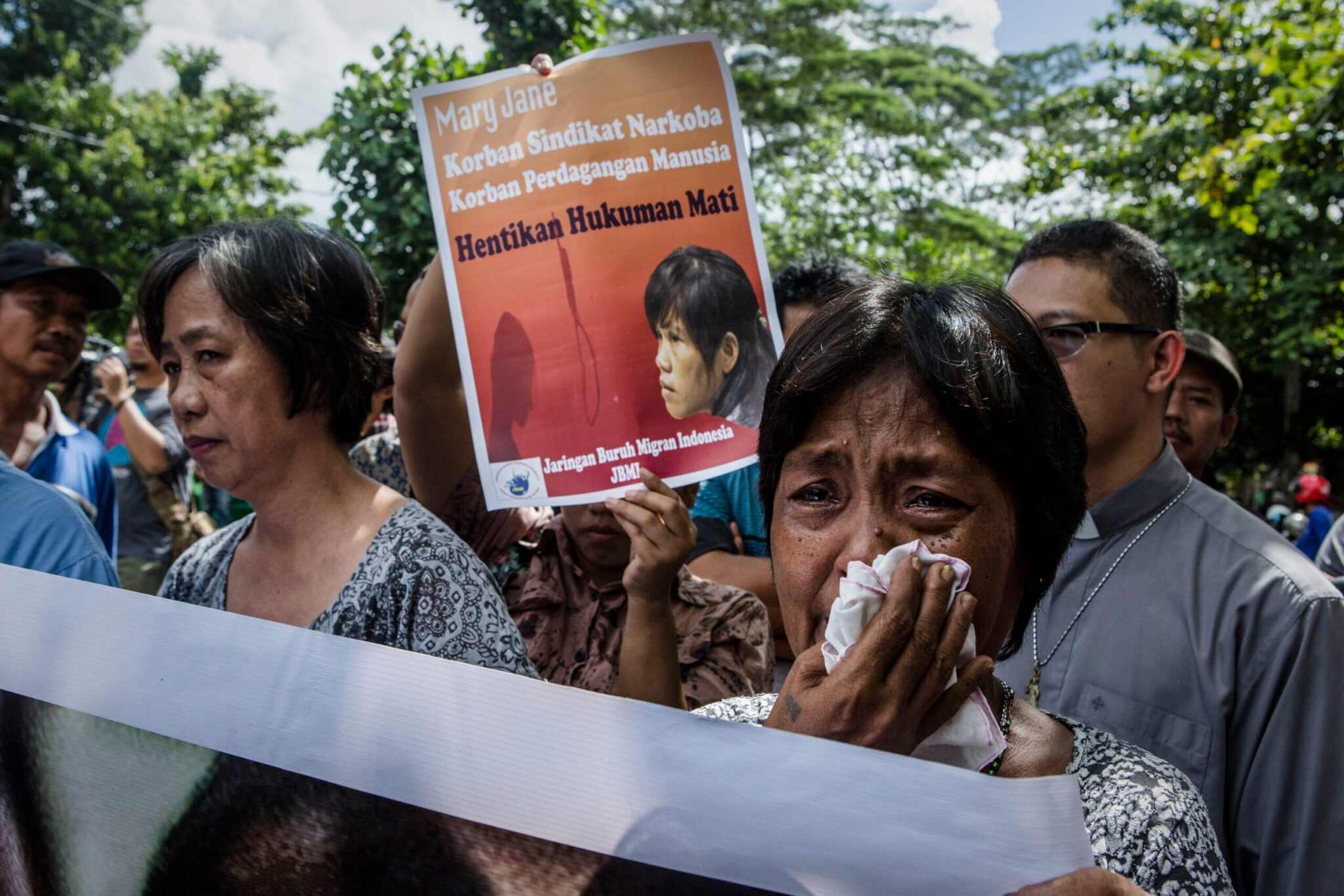 Η μια κοπέλα που περιμένει την εκτέλεση της, είναι από τις Φιλιππίνες και ονομάζεται Mary Jane Veloso, ετών 30. Πίσω στη χώρα της, τα κύματα συμπαράστασης και έκκλησης για αμνηστία στην ποινή, είναι τεράστια. Τα τα δύο παιδιά που μεγάλωνε μόνη υπό συνθήκες φτώχειας, πριν βρεθεί στην Μαλαισία για αυτό που θεωρούσε ως μια καλοπληρωμένη δουλειά, και από κει στην Ινδονησία με περισσότερα από 2 κιλά ηρωίνης, δίχως να το γνωρίζει, και επί τόπου συλληφθεί από την τοπική αστυνομία, διαρκώς ρωτάνε: «πότε θα γυρίσει η μαμά;».