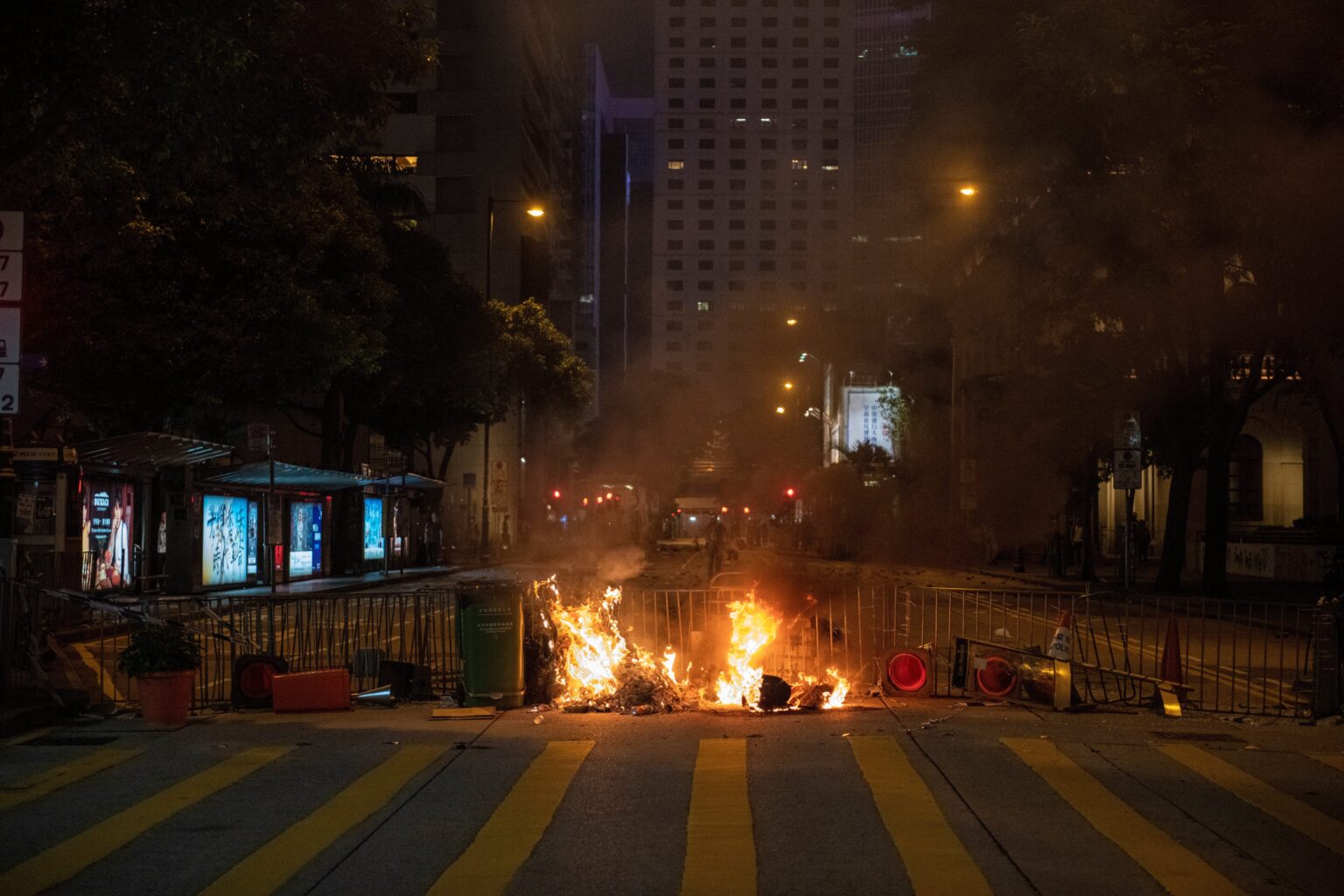 Το Χονγκ Κονγκ ξύπνησε την Κυριακή σε ήρεμους τόνους, έπειτα από μία βίαια νύκτα, κατά την οποία οι διαδηλωτές έβαλαν φωτιές σε σταθμούς του μετρό και βανδάλισαν κτήρια, περιλαμβανομένου και ενός γραφείου του κινεζικού κρατικού πρακτορείου Xinhua.
