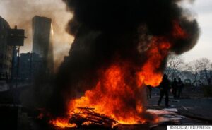 Σήμερα έγιναν τα εγκαίνια της νέας έδρας της Ευρωπαϊκής Κεντρικής Τράπεζας, ενώ οι διαδηλωτές έκαψαν περιπολικά της αστυνομίας, επετέθησαν κατά δημαρχείου περιοχής της πόλης και συγκρούσθηκαν με τις αστυνομικές δυνάμεις αφού πυρπόλησαν κάδους απορριμμάτων και λάστιχα.