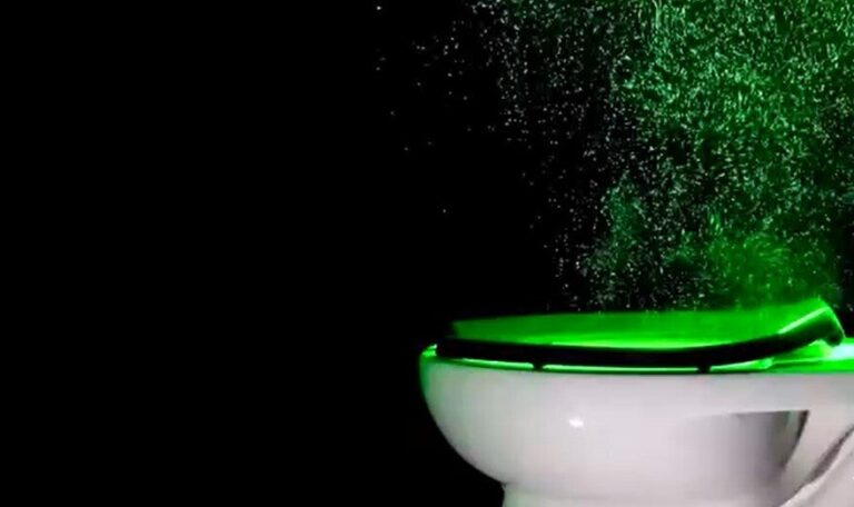 Ερευνητές από το Πανεπιστήμιο του Κολοράντο Μπόλντερ χρησιμοποίησαν φως λέιζερ και πράσινη βαφή για να δείξουν το σύννεφο αερολυμάτων που εκρήγνυται όταν τραβάτε το καζανάκι σε μια δημόσια τουαλέτα.