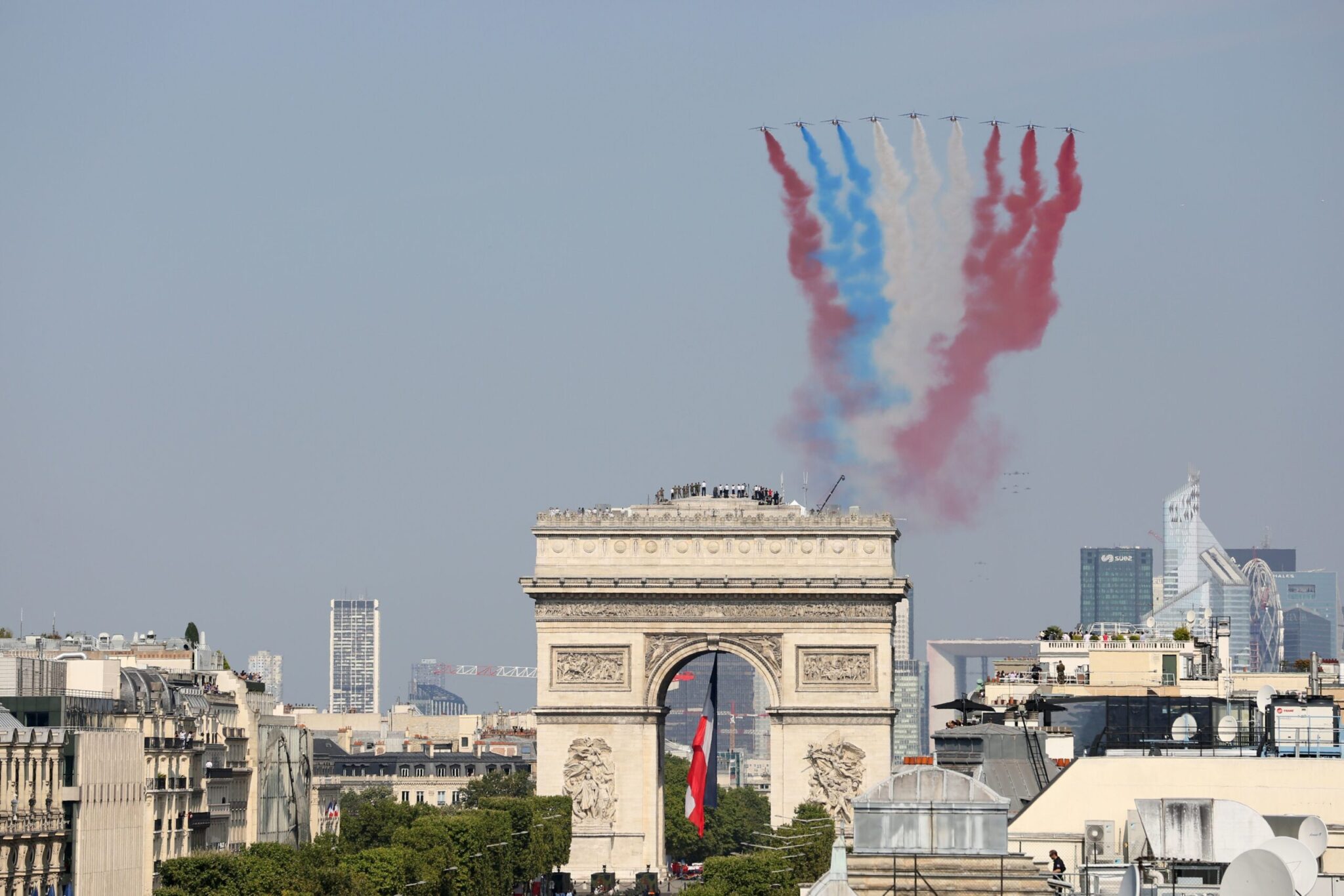 Ειδικότερα, το ένα από τα εννέα Alphajet που θα σχημάτιζαν στον ουρανό τη γαλλική σημαία, έβγαλε κόκκινο και όχι μπλε καπνό.