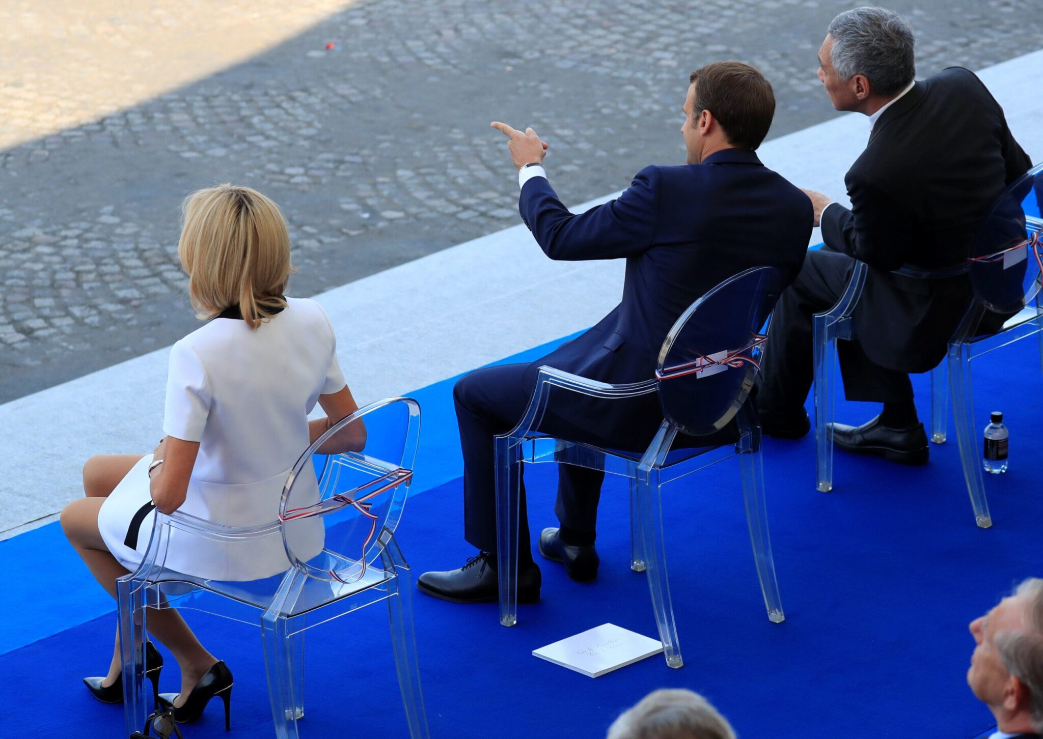 Ένα λάθος και ένα μικρό ατύχημα, ωστόσο, σημάδεψαν τη μεγαλοπρεπή παρέλαση μπροστά στα μάτια του Γάλλου προέδρου Εμανουέλ Μακρόν,