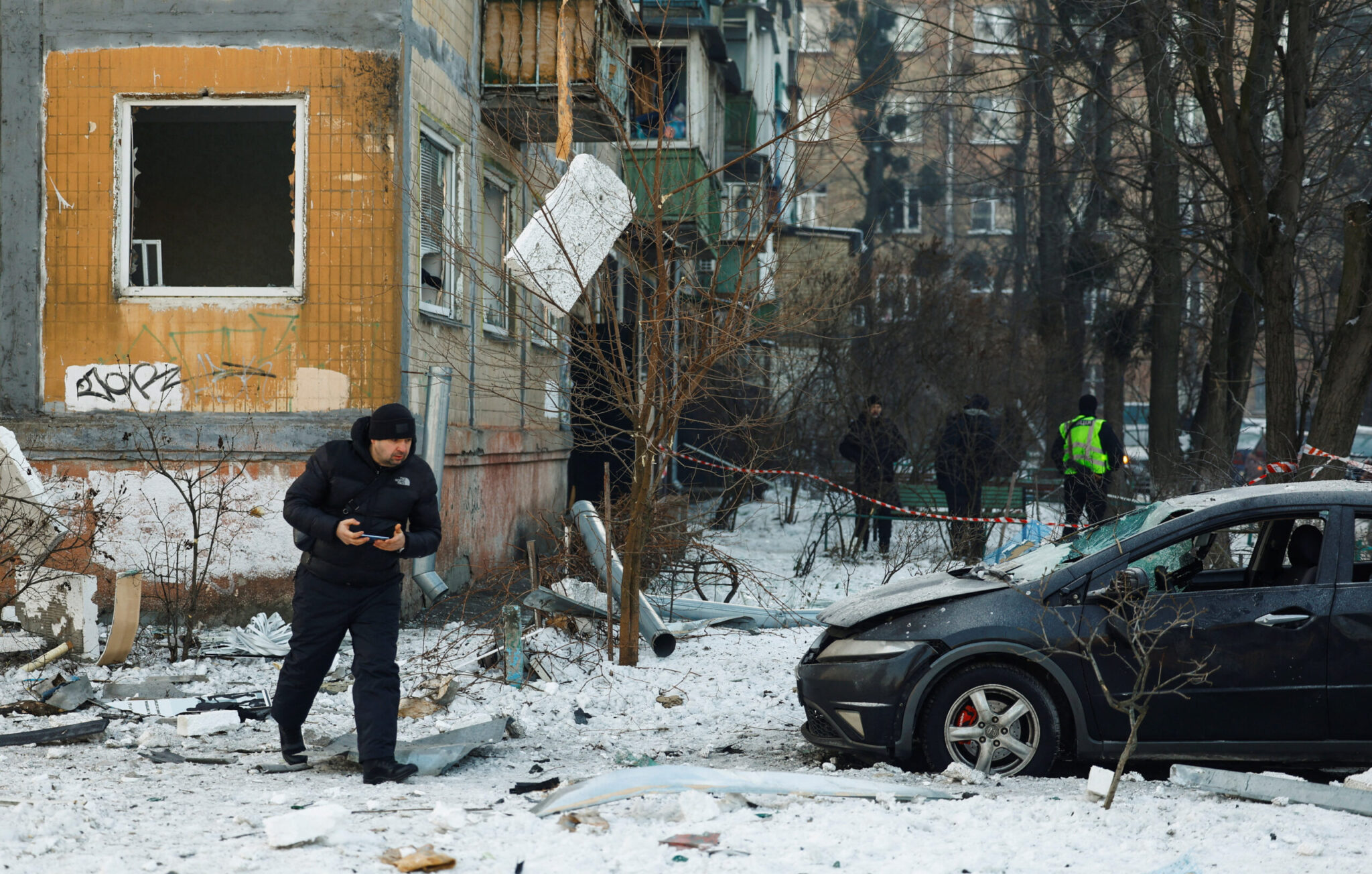 Στο Κίεβο, όπου η θερμοκρασία έπεσε τη νύκτα σχεδόν στους 20 βαθμούς Κελσίου υπό το μηδέν, αυτόπτες μάρτυρες ανέφεραν ισχυρές εκρήξεις μετά τα μεσάνυχτα, λέγοντας ότι έγινε επίθεση τόσο με πυραύλους όσο και με μη επανδρωμένα εναέρια οχήματα.
