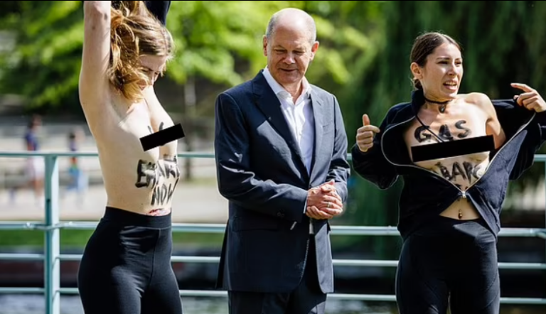 Γυμνόστηθες ακτιβίστριες διέκοψαν την ομιλία του Όλαφ Σολτς, την Κυριακή, 21 Αυγούστου, διαμαρτυρόμενες για την αύξηση των τιμών των καυσίμων, σύμφωνα με δημοσίευμα του news.sky.com. Η διαμαρτυρία έρχεται σε μια στιγμή, όπου πρόσφατη έρευνα καταδεικνύει ότι περίπου τα δύο τρίτα των Γερμανών είναι δυσαρεστημένοι με το έργο του ηγέτη τους.