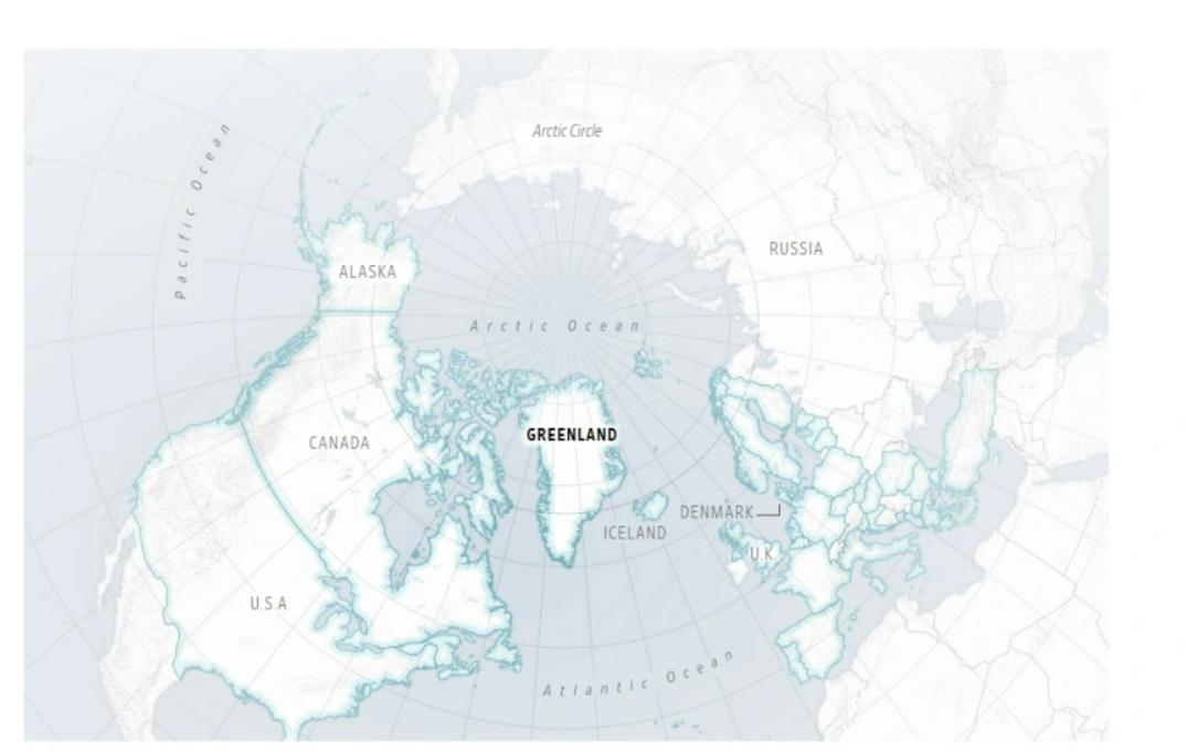 Ακόμη και με πιο ρεαλιστικές απεικονίσεις, η Γροιλανδία παραμένει τεράστια σε έκταση. Είναι μεγαλύτερη τόσο από την Καλιφόρνια όσο και από το Μεξικό και σχεδόν τέσσερις φορές μεγαλύτερη από το Τέξας. Πέρα από το μέγεθός της, το νησί κατέχει μια εξαιρετικά στρατηγική θέση: βρίσκεται ανάμεσα στα τμήματα του ΝΑΤΟ στη Βόρεια Αμερική και την Ευρώπη, ανάμεσα στο ΝΑΤΟ και τη Ρωσία, αλλά και στο ανατολικό άκρο της Αρκτικής.