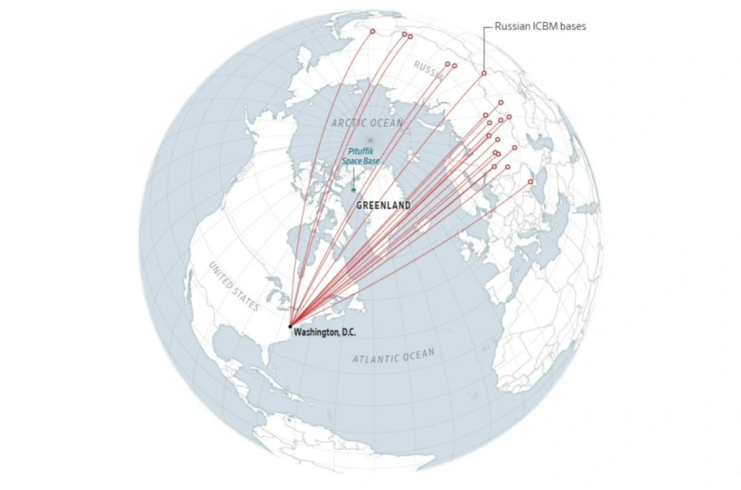 Σε περίπτωση εκτόξευσης διηπειρωτικών βαλλιστικών πυραύλων από τη Ρωσία ή την Κίνα εναντίον των Ηνωμένων Πολιτειών, εκτιμάται ότι πολλοί από αυτούς θα διέρχονταν πάνω από τη Γροιλανδία. Αυτός είναι και ο λόγος για τον οποίο οι ΗΠΑ διατηρούν στο νησί βάση της Διαστημικής Δύναμης, η οποία παρακολουθεί διαρκώς τον ουρανό για πιθανές απειλές.