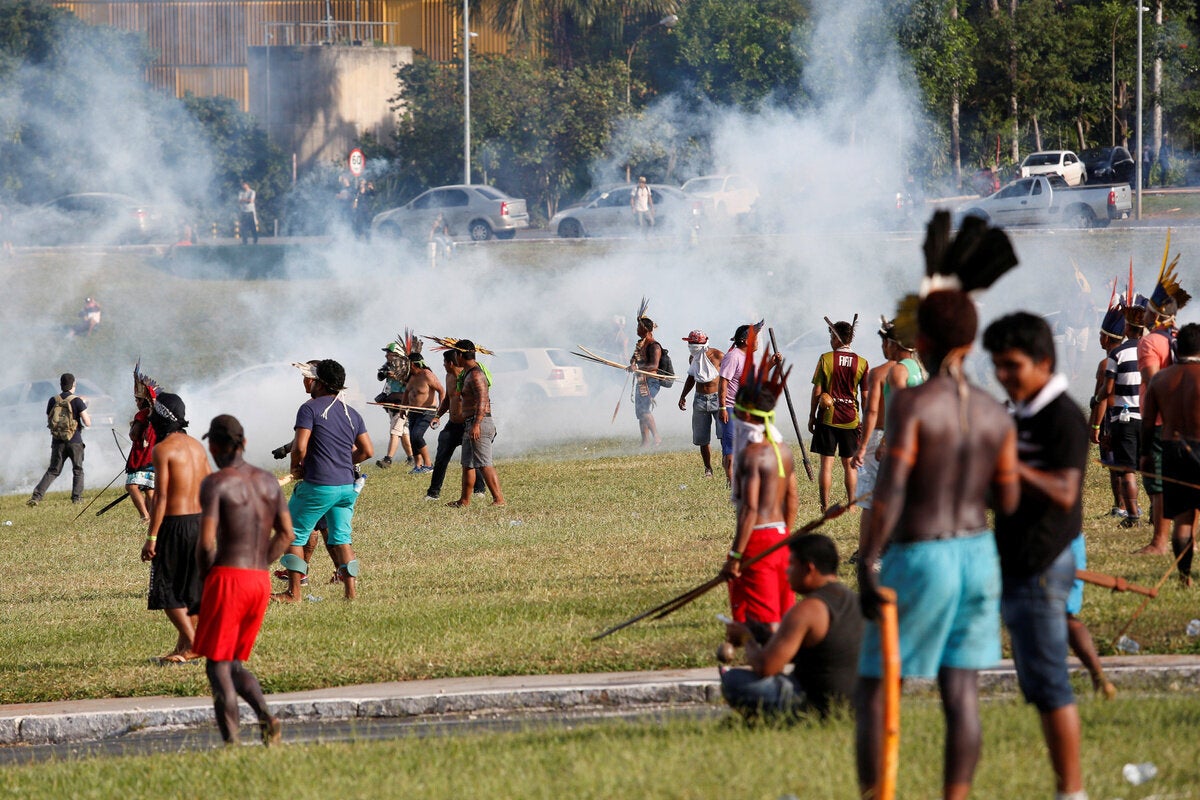 Μέλη αυτοχθόνων ομάδων συγκρούστηκαν με αστυνομικές μονάδες καταστολής στην πρωτεύουσα της Βραζιλίας, τη Μπραζίλια, την Τρίτη, αναφέρει το BBC.