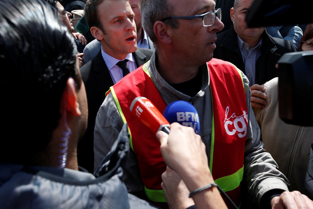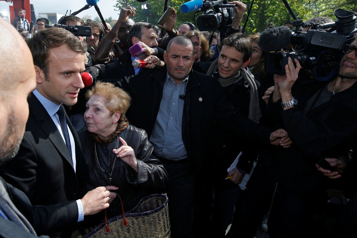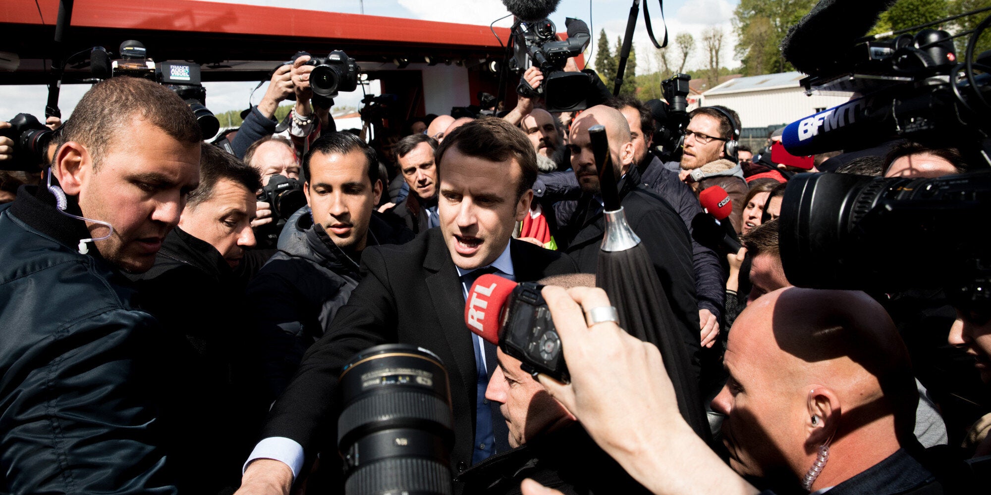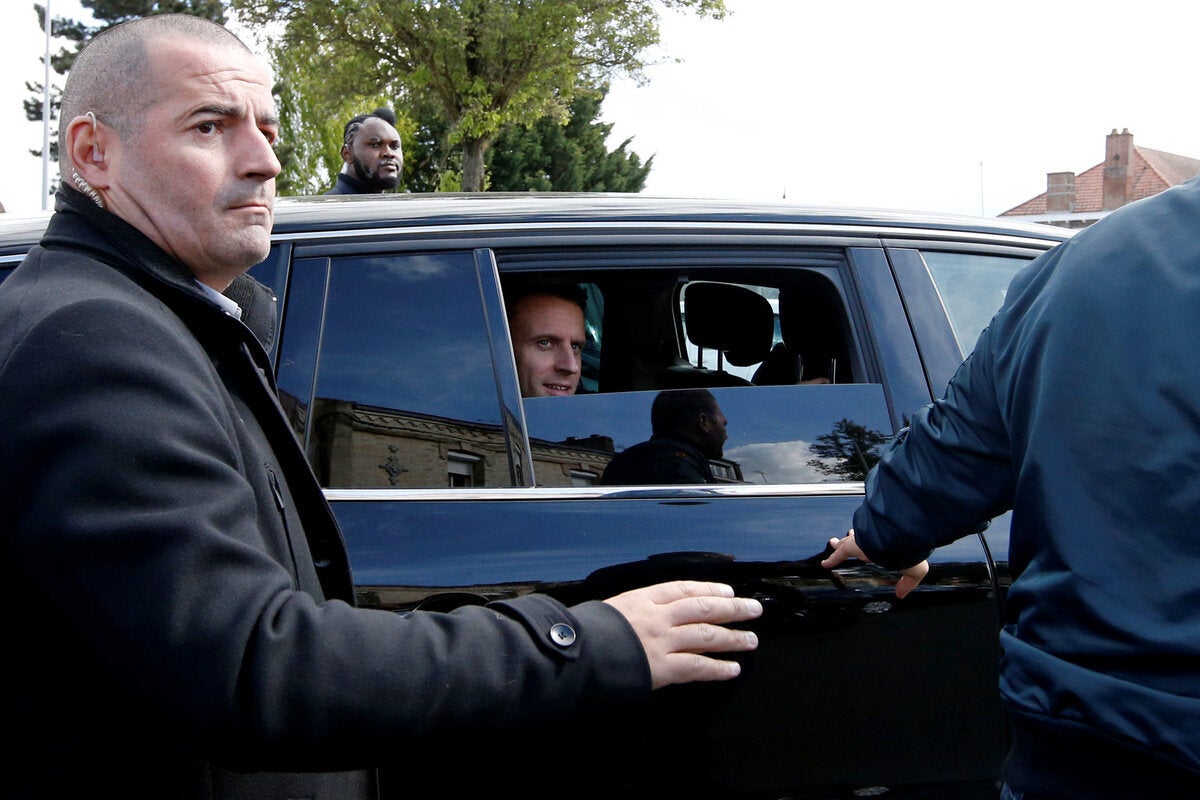 Το πλήθος φώναζε «Μαρίν, πρόεδρος» προς τον φιλοευρωπαϊστή υποψήφιο μπροστά από τη μονάδα της Whirlpool στην Αμιένη, στη βόρεια Γαλλία. Ο Μακρόν έφθασε εκεί το απόγευμα αφού η Μαρίν Λεπέν είχε επισκεφθεί αιφνιδιαστικά το εργοστάσιο το πρωί.