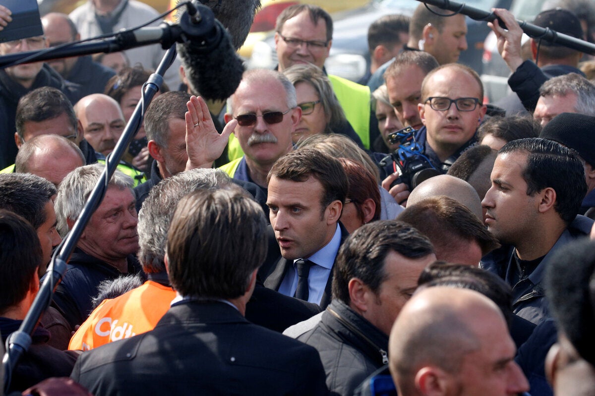 «Είναι σημαντικό να μην τροφοδοτούμε την οργή όμως να ανερχόμαστε στο ύψος των προσδοκιών» δήλωσε ο Μακρόν, που ήταν περιστοιχισμένος από εντυπωσιακά πολλές κάμερες. Λίγο πριν κατηγόρησε τη Λεπέν ότι επιχειρεί «να εκμεταλλευτεί πολιτικά» τη διαμάχη που έχει ξεσπάσει για την τύχη του εργοστασίου, το οποίο πρόκειται να μετεγκατασταθεί στην Πολωνία.