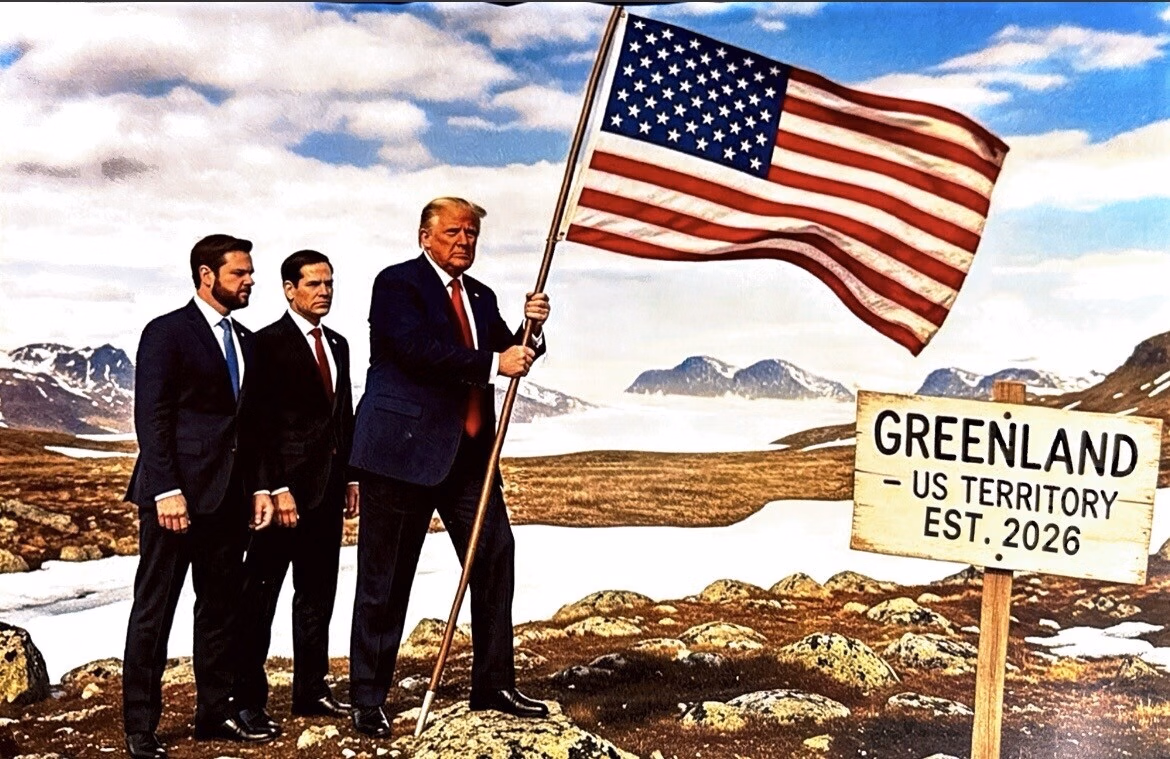 Αξίζει δε να σημειωθεί ότι ο Ντόναλντ Τραμπ, προτού μπει στο αεροπλάνο που θα τον μεταφέρει στο Νταβός, ανάρτησε στο Truth Social μία φωτογραφία-προϊόν ΑΙ, στην οποία απεικονίζεται μαζί με τον αντιπρόεδρο Βανς και τον υπουργό Εξωτερικών Μάρκο Ρούμπιο να καταλαμβάνουν τη Γροιλανδία.