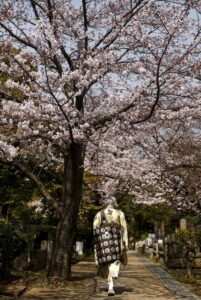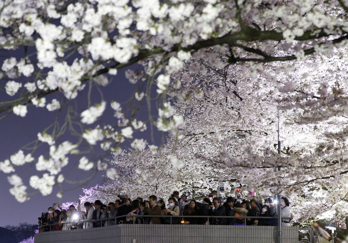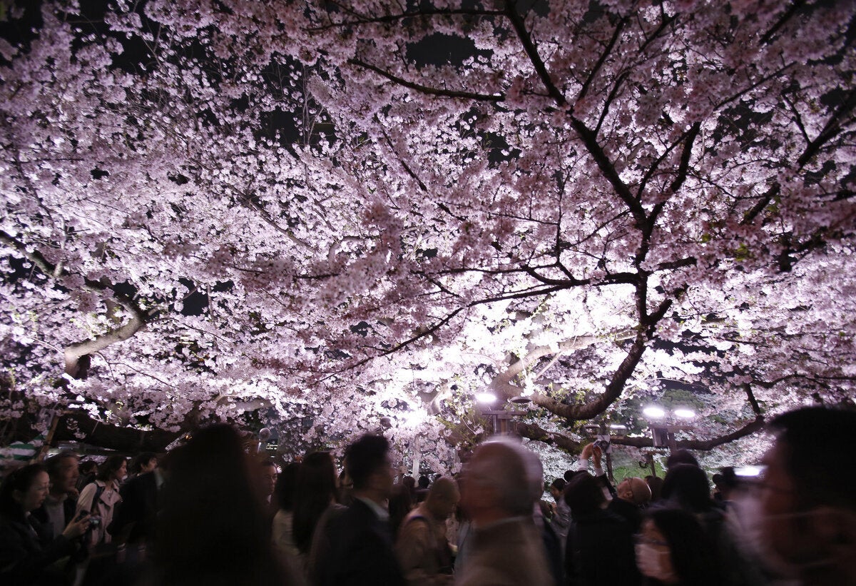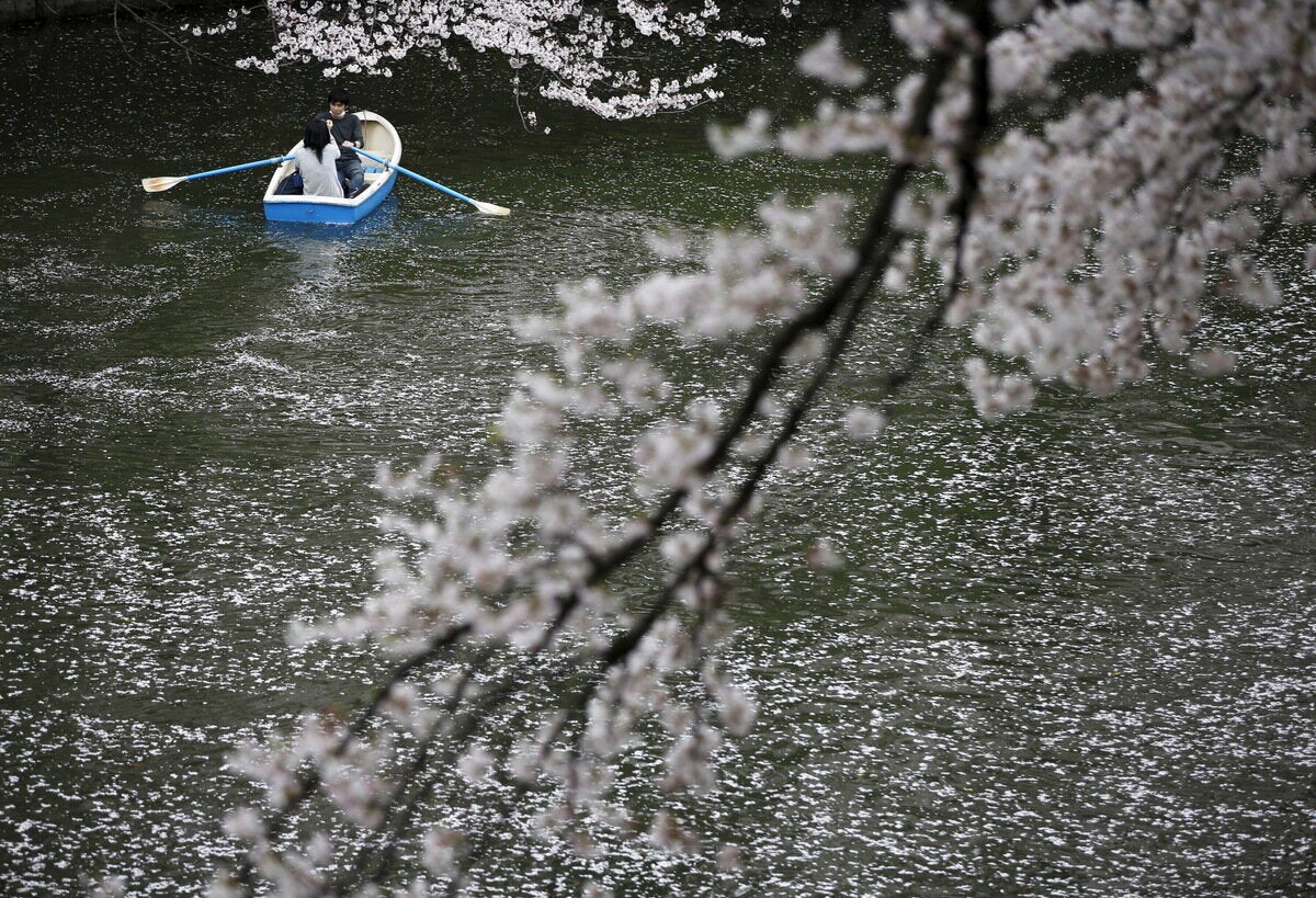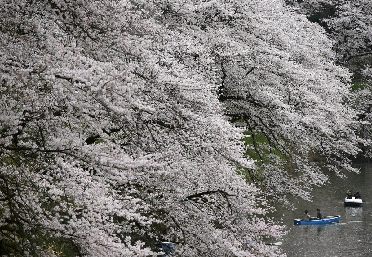 Μοναχοί περπατούσαν στα μονοπάτια του πάρκου Ueno παίζοντας φλάουτο, ενώ ο κόσμος μέσα σε βάρκες στο ποτάμι μπροστά από τον περίβολο των Αυτοκρατορικών Ανακτόρων στο Τόκιο θαύμαζε το τοπίο.