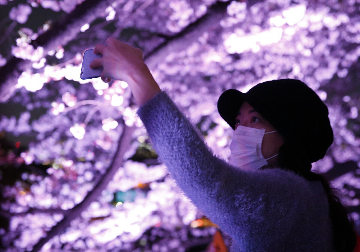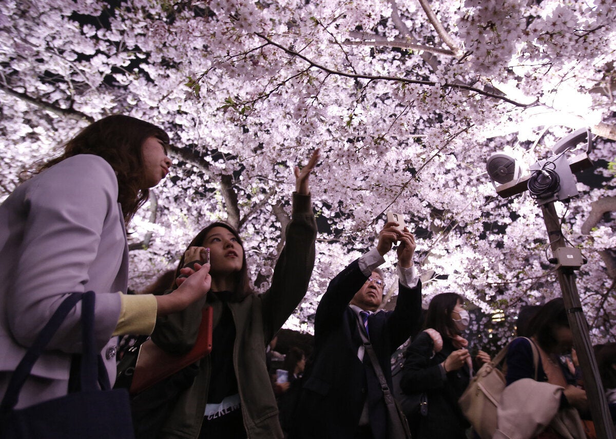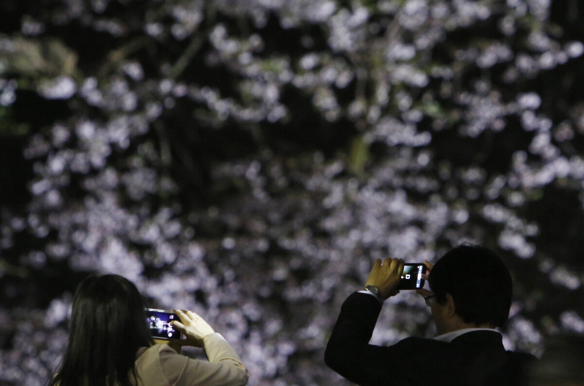Κάτω από τις ανθισμένες κερασιές, κάτοικοι του Τόκιο έκαναν πικ-νικ, όπως και εργαζόμενοι μετά τη δουλειά τους.
