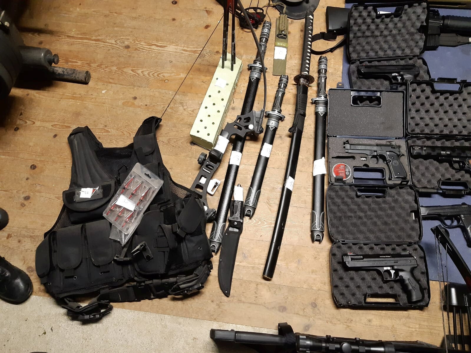 Βρήκαν επίσης ένα μεγάλο αριθμό όπλων, συμπεριλαμβανομένων πιστολιών, κυνηγετικών καραμπινών και βαλλιστρών.