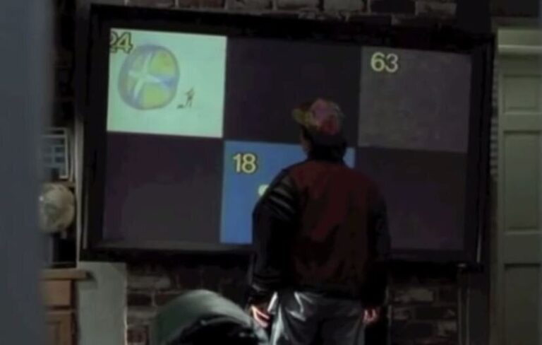 8. Ο πρωταγωνιστής ξαφνιάζεται με τη διαφήμιση με το ολόγραμμα για την τρισδιάστατη ταινία τα σαγόνια του καρχαρία νούμερο 19. Σήμερα τρισδιάστατες ταινίες μπορούμε να δούμε και στο σπίτι μας.