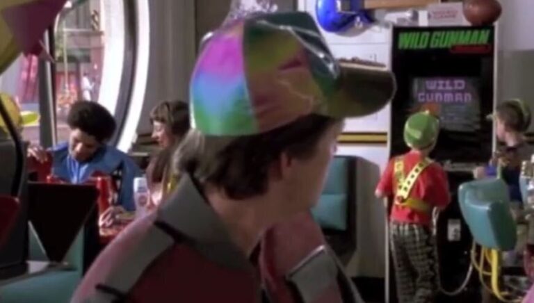 Εκεί βλέπει ιπτάμενα αυτοκίνητα, αθλητικά παπούτσια των οποίων τα κορδόνια δένονται μόνα τους, ιπτάμενα πατίνια και πολλά άλλα.