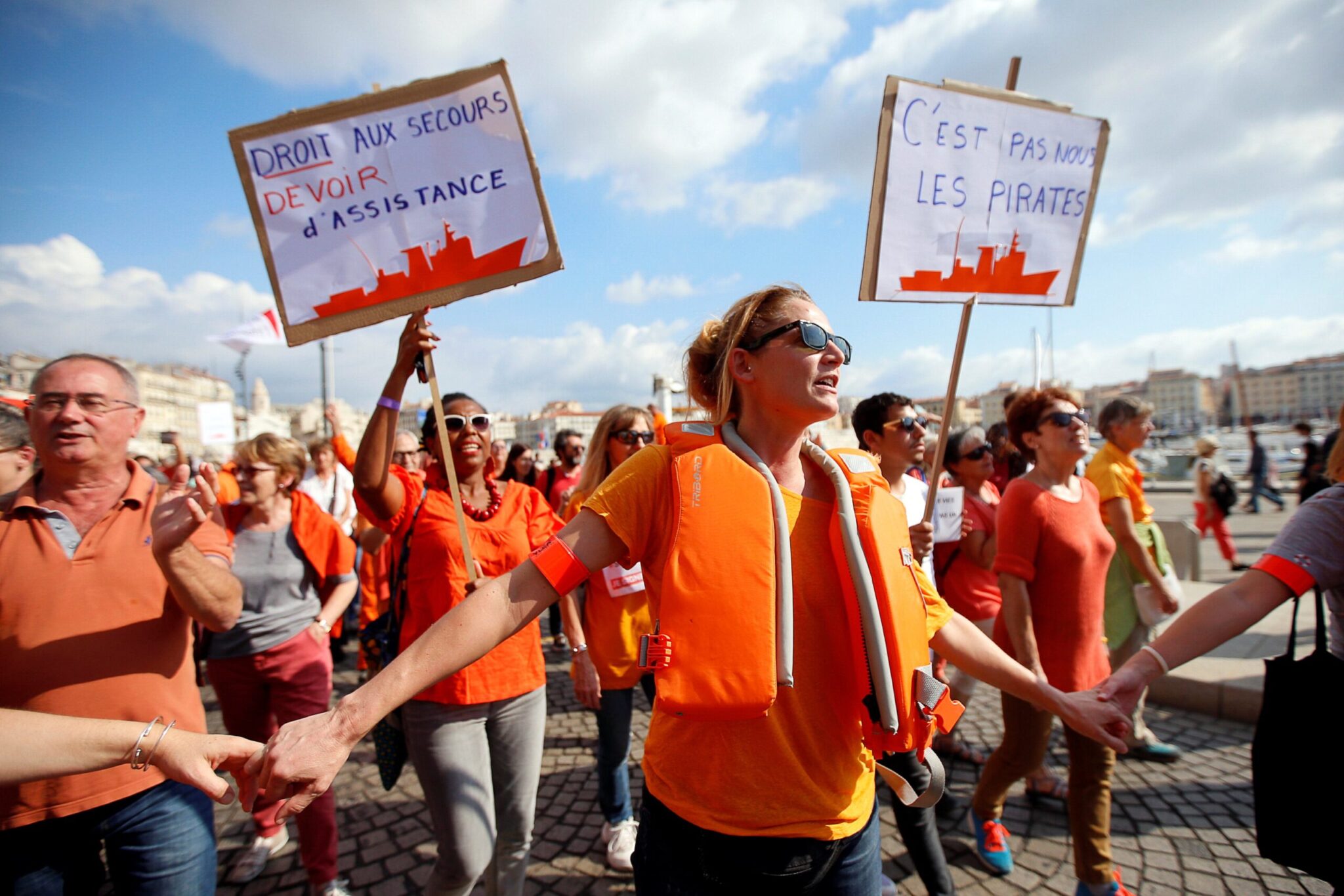 Ντυμένοι στα πορτοκαλί, στο χρώμα του πλοίου Aquarius και των σωσιβίων, χιλιάδες άνθρωποι διαδήλωσαν σήμερα στην Γαλλία, παράλληλα με τις συγκεντρώσεις που επρόκειτο να πραγματοποιηθούν και σε άλλες χώρες της Ευρώπης, για να καταγγείλουν την κατάσταση στην οποία έχει περιέλθει το πλοίο των ανθρωπιστικών αποστολών και για να υποστηρίξουν τις επιχειρήσεις διάσωσης των μεταναστών στην Μεσόγειο.