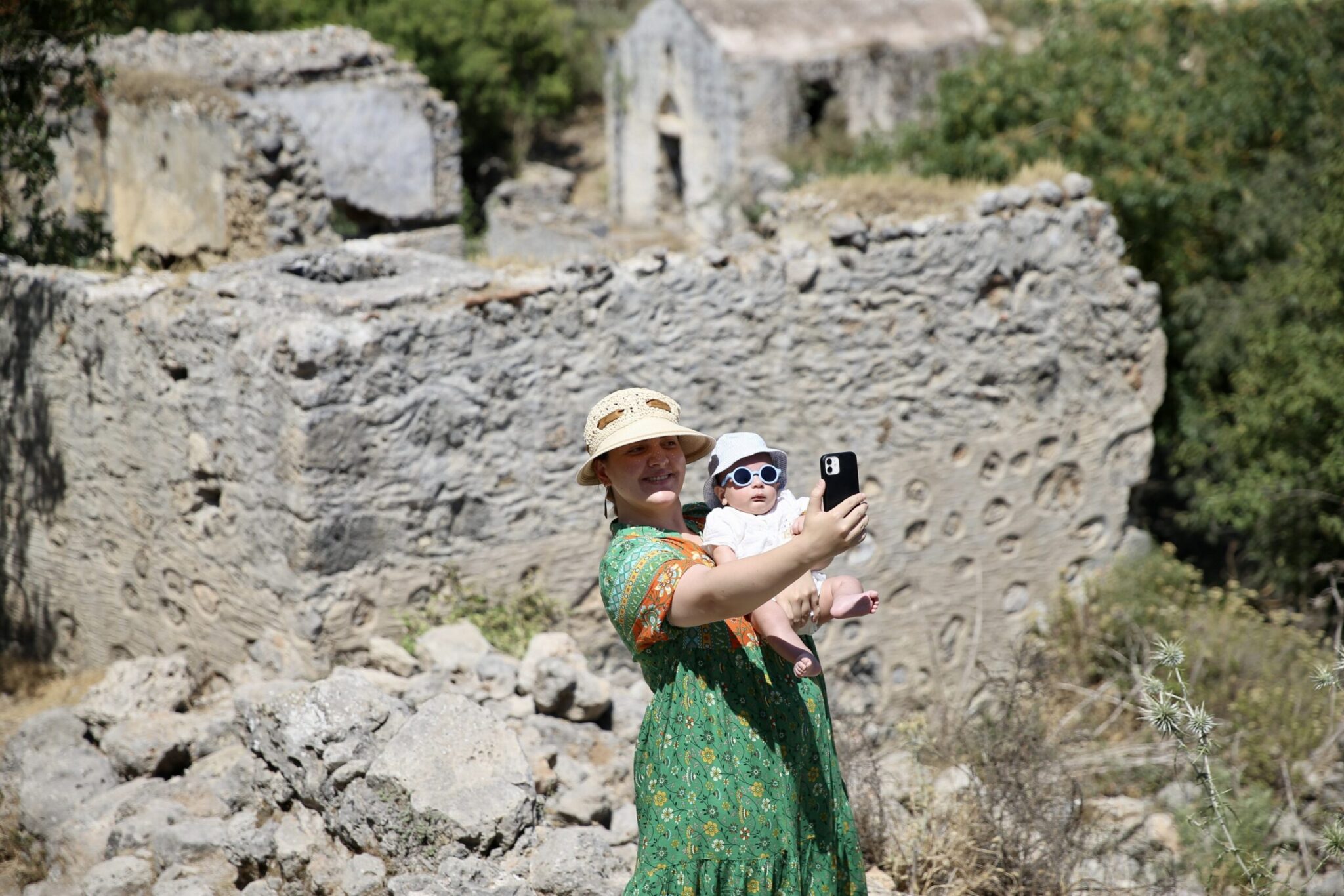 MUGLA, ΤΟΥΡΚΙΑ – 25 ΙΟΥΝΙΟΥ: Άνθρωποι επισκέπτονται το Kayakoy, το οποίο είναι επίσης γνωστό ως “πόλη-φάντασμα” επειδή εγκαταλείφθηκε πριν από χρόνια και συγκαταλέγεται στις ευαίσθητες περιοχές που πρέπει να προστατευθούν αυστηρά στην περιοχή Fethiye της Mugla, Τουρκία, στις 25 Ιουνίου 2024. Το Kayakoy, ή Levissi στα ελληνικά, είναι ένα χωριό στο Fethiye της νοτιοδυτικής Τουρκίας όπου ζούσαν Έλληνες της Ανατολίας μέχρι περίπου το 1923. Η πόλη-φάντασμα, που σήμερα διατηρείται ως μουσειακό χωριό, αποτελείται από εκατοντάδες ετοιμόρροπα αλλά ακόμα ως επί το πλείστον άθικτα σπίτια και εκκλησίες ελληνικού τύπου, τα οποία καλύπτουν μια μικρή βουνοπλαγιά και χρησιμεύουν ως σημείο στάσης για τους τουρίστες που επισκέπτονται το Φετιγιέ και το κοντινό Ολουντενίζ. Χτίστηκε στη θέση της αρχαίας πόλης της Καρμύλης τη δεκαετία του 1700. Μετά τον ελληνοτουρκικό πόλεμο, το Καγιάκοϊ εγκαταλείφθηκε σε μεγάλο βαθμό μετά την υπογραφή συμφωνίας ανταλλαγής πληθυσμών από την τουρκική και την ελληνική κυβέρνηση το 1923. (Φωτογραφία: Ali Riza Akkir/Anadolu via Getty Images)Anadolu via Getty Images