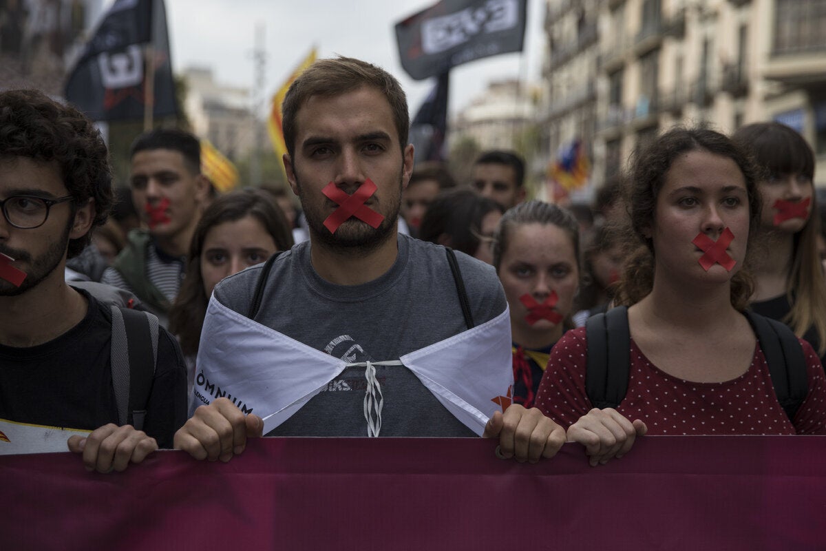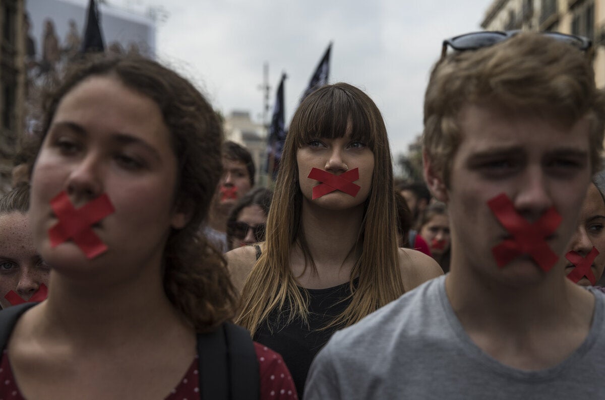 Μόλις λίγες ώρες μετά την επίδειξη πρωτοφανούς αστυνομικής βίας σε βάρος πολιτών οι δρόμοι στη Βαρκελώνη, τη Χερόνα και τη Λιέδα και σε άλλες πόλεις στην Καταλονία γέμισαν εκ νέου με πολίτες. Aυτή τη φορά δεν ήταν ματωμένοι, δεν τους έσυρε κανείς στο δρόμο. Στεκόντουσαν ακίνητοι, σιωπηλοί. Στο στόμα τους είχαν κολλημένα σε σχήμα ”χ” τσιρότα κόκκινα. Οι περισσότεροι ανάμεσά τους ήταν φοιτητές.