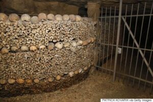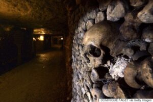 Οι κατακόμβες στο Παρίσι χτίστηκαν τον 18ο αιώνα και «φιλοξενούν» τα λείψανα έξι εκατομμυρίων ανθρώπων. Οι στοές εκτείνονται σε 250 χλμ κάτω από το Παρίσι, όμως το μεγαλύτερο κομμάτι έχει κριθεί επικίνδυνο και απαγορεύεται ρητώς η περιπλάνηση εκτός των ορίων που έχουν θέσει οι αρχές.