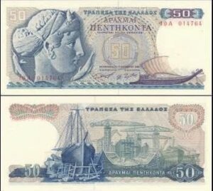 Σε ακόμη παλαιότερες εκδόσεις απεικονίζονταν 1964 και 1978 απεικονίζονταν η νύμφη Αρεθούσα και πάλι στο χαρτονόμισμα των 50δρχ και η θεά Αθηνά σε αυτό των 100δρχ.