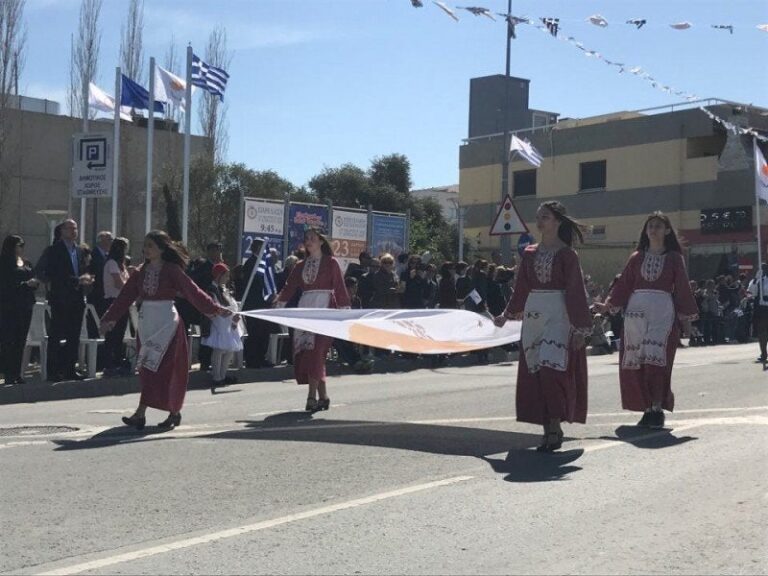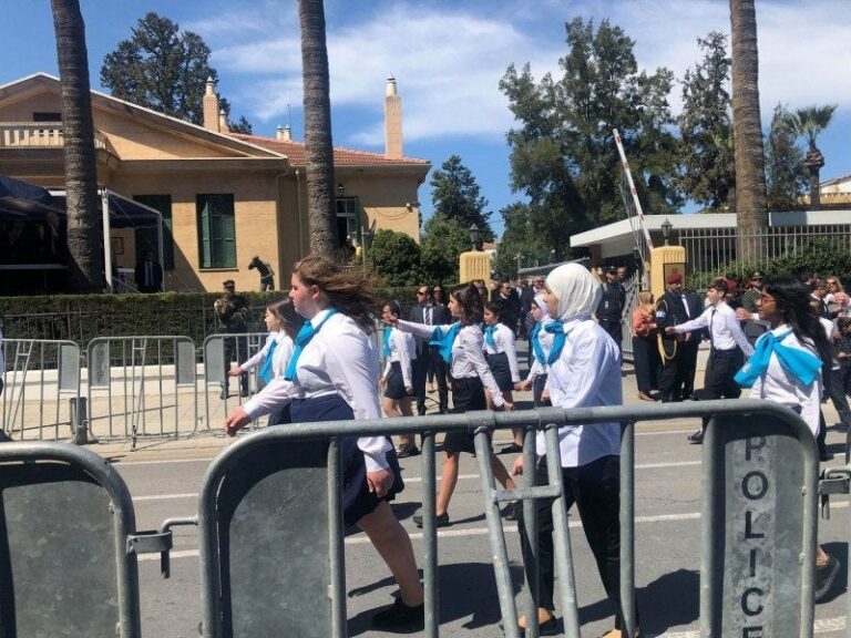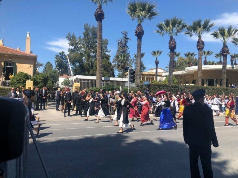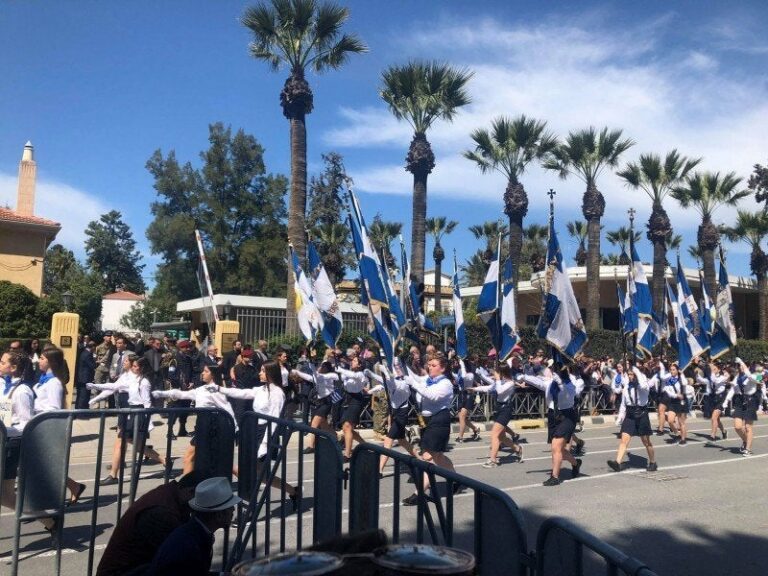 Μαθητές και μαθήτριες γυμνασίων, λυκείων και τεχνικών σχολών, φοιτήτριες και φοιτητές πανεπιστημίων και τριτοβάθμιων σχολών, τμήματα προσκόπων και οδηγών, παλαιοί πολεμιστές, αθλητικοί σύλλογοι και συνδικαλιστικές οργανώσεις παρέλασαν στο πλαίσιο των ετήσιων εορτασμών για την εθνική επέτειο της 25ης Μαρτίου μπροστά από την Ελληνική Πρεσβεία, στη Λευκωσία.
