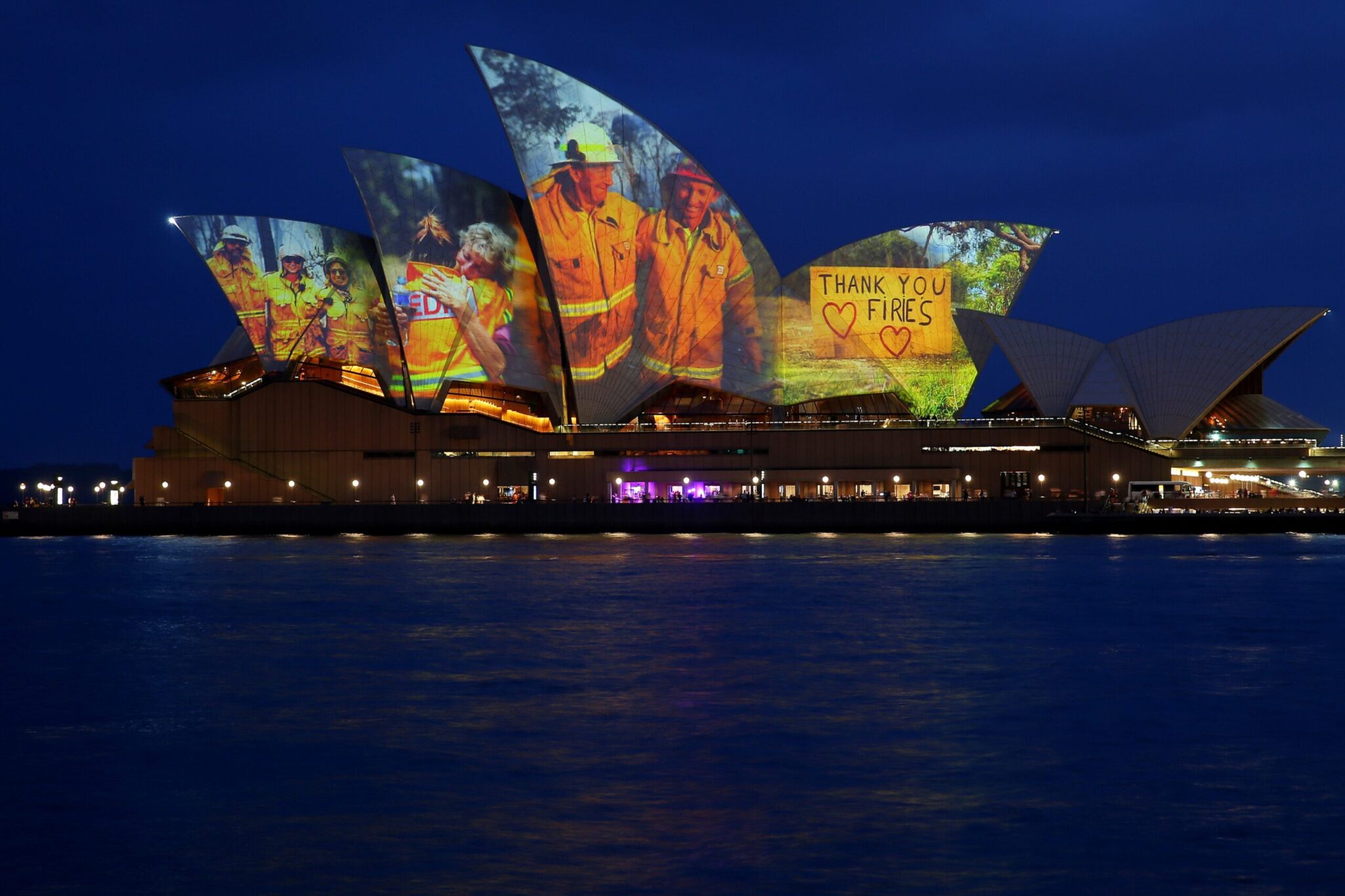 Η φημισμένη Όπερα του Σίδνεϊ άλλαξε όψη, καθώς στην πρόσοψη του κτιρίου προβάλλονται φωτογραφίες με πυροσβέστες. Ήταν ένας τρόπος να δείξει την ευγνωμοσύνη της για την υπερπροσπάθεια που καταβάλλουν όλο αυτόν τον καιρό στην μάχη με τις πυρκαγιές.