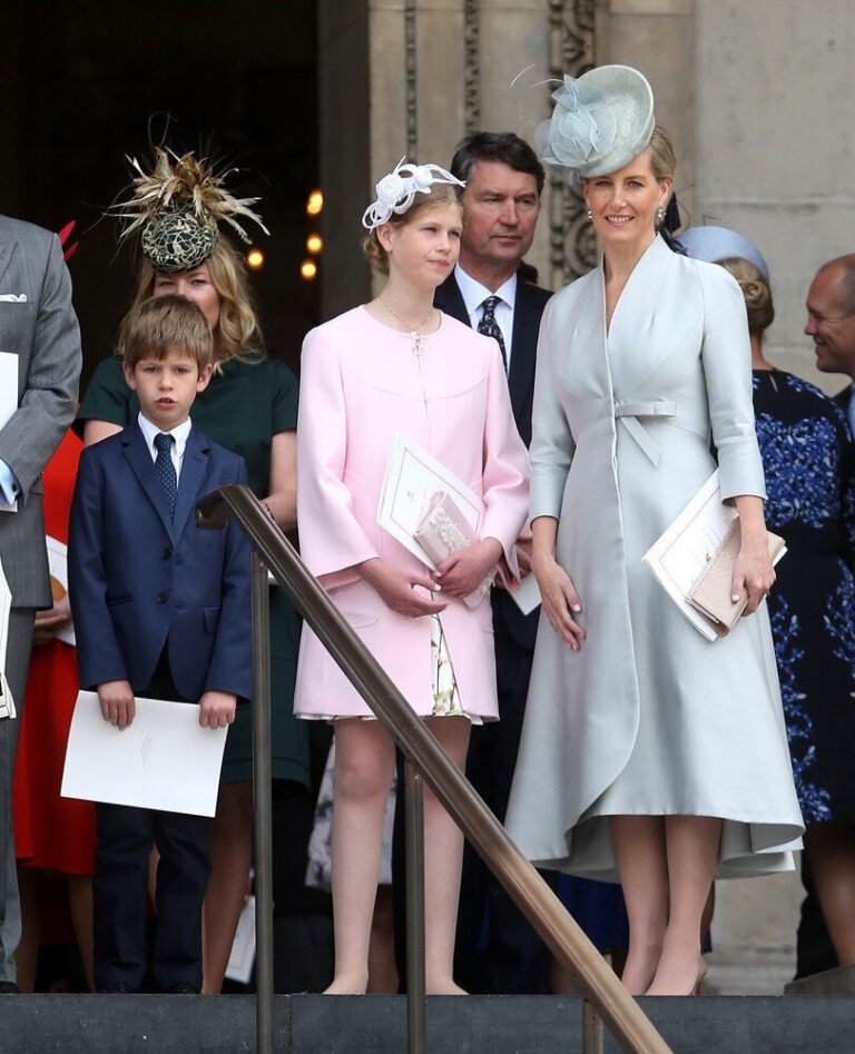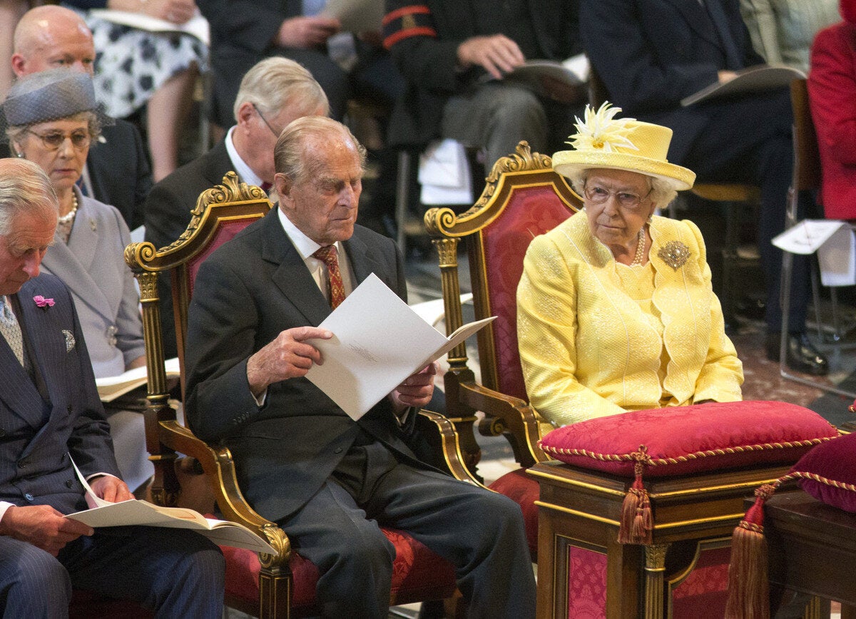 Η βασίλισσα, φορώντας ένα φόρεμα σε παλ κίτρινο χρώμα και το ανάλογο καπέλο, συνοδευόταν από τον σύζυγό της, πρίγκιπα Φίλιππο -ο οποίος γιορτάζει σήμερα τα 95α γενέθλιά του- και τον γιό τους, πρίγκιπα-διάδοχο Κάρολο. Ο πρίγκιπας Ουίλιαμ, η σύζυγός του Κέιτ και ο πρίγκιπας Χάρι ήταν επίσης στην τελετή.