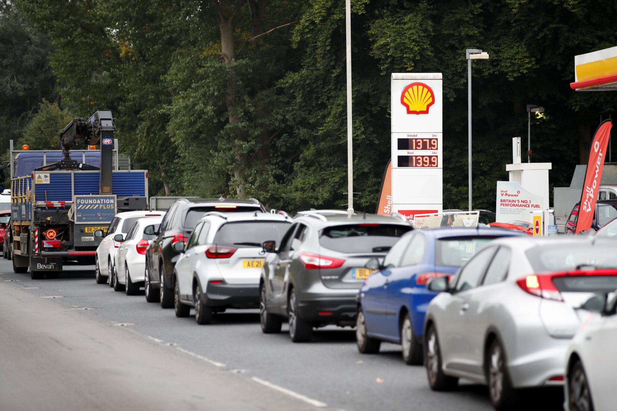 Ουρά οχημάτων για βενζίνη έξω από ένα πρατήριο καυσίμων Shell στο Redbourn, Βρετανία REUTERS