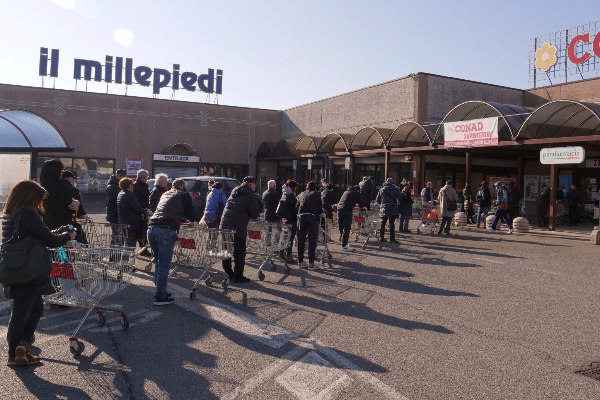 Ουρές έξω από σούπερ μάρκετ στη βόρεια Ιταλία, 24 Φεβρουαρίου 2020 (AP Photo/Paolo Santalucia)ASSOCIATED PRESS