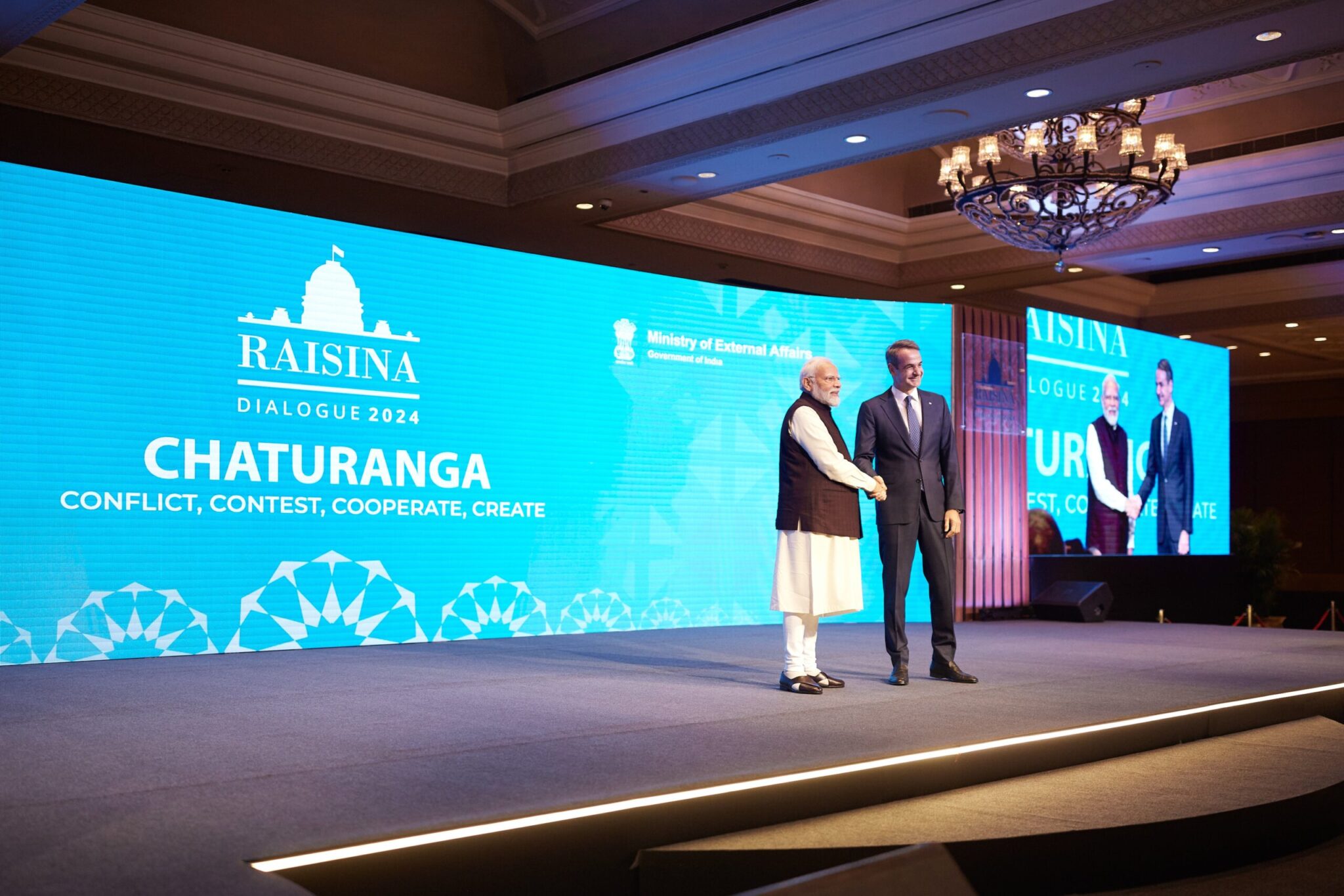 Ο Πρωθυπουργός της Ελλάδας, Κυριάκος Μητσοτάκης, ήταν ο κεντρικός καλεσμένος στον διάλογο Raisina (2024), την κορυφαία διάσκεψη της Ινδίας για τη γεωπολιτική και τη γεωοικονομία που διοργανώθηκε από το Observer Research Foundation σε συνεργασία με το Υπουργείο Εξωτερικών της Ινδίας. Ήταν μετά από 16 χρόνια που Έλληνας πρωθυπουργός επισκέφτηκε την Ινδία και χαρακτηρίστηκε ιστορική στιγμή από τον Πρωθυπουργό Μόντι. Οι δύο ηγέτες δεσμεύτηκαν να διατηρούν τακτικές επαφές μεταξύ των δύο Υπουργείων Εξωτερικών για να ανταλλάσσουν απόψεις σχετικά με τις παγκόσμιες και περιφερειακές απειλές ασφάλειας. Ο Έλληνας Πρωθυπουργός εξέφρασε έντονο ενδιαφέρον να συμμετάσχει στην Πρωτοβουλία για τον Ινδο-Ειρηνικό.
