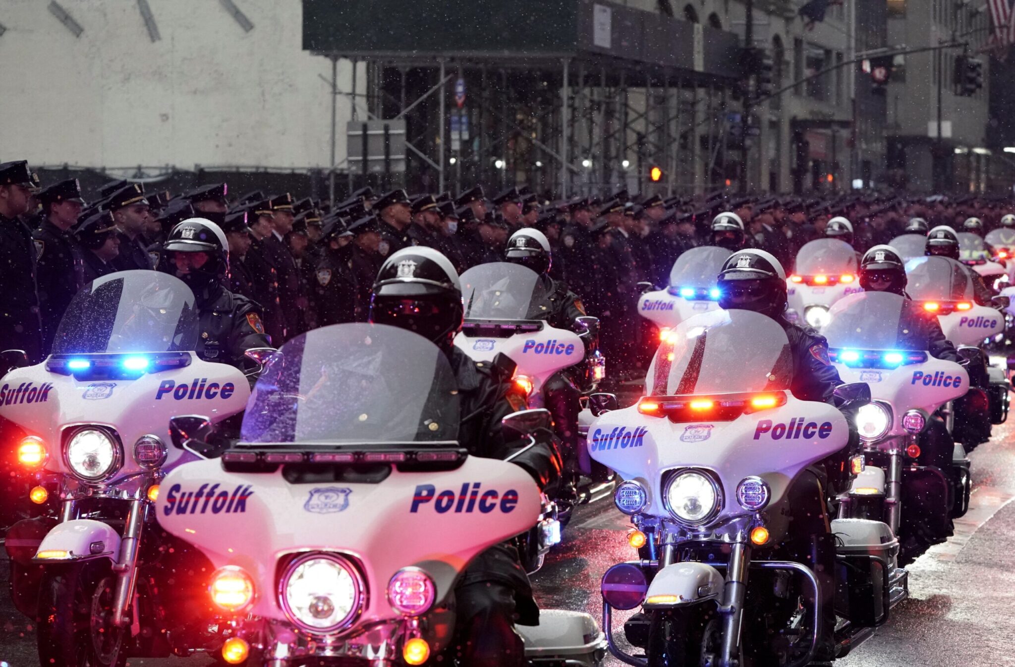 Χιλιάδες αστυνομικοί της πόλης της Νέας Υόρκης παρατάχθηκαν στην Πέμπτη Λεωφόρο του Μανχάταν σήμερα για να τιμήσουν έναν συνάδελφό τους, που σκοτώθηκαν την περασμένη εβδομάδα εν ώρα καθήκοντος, ενώ είχε σπεύσει σε ένα περιστατικό ενδοοικογενειακής βίας.