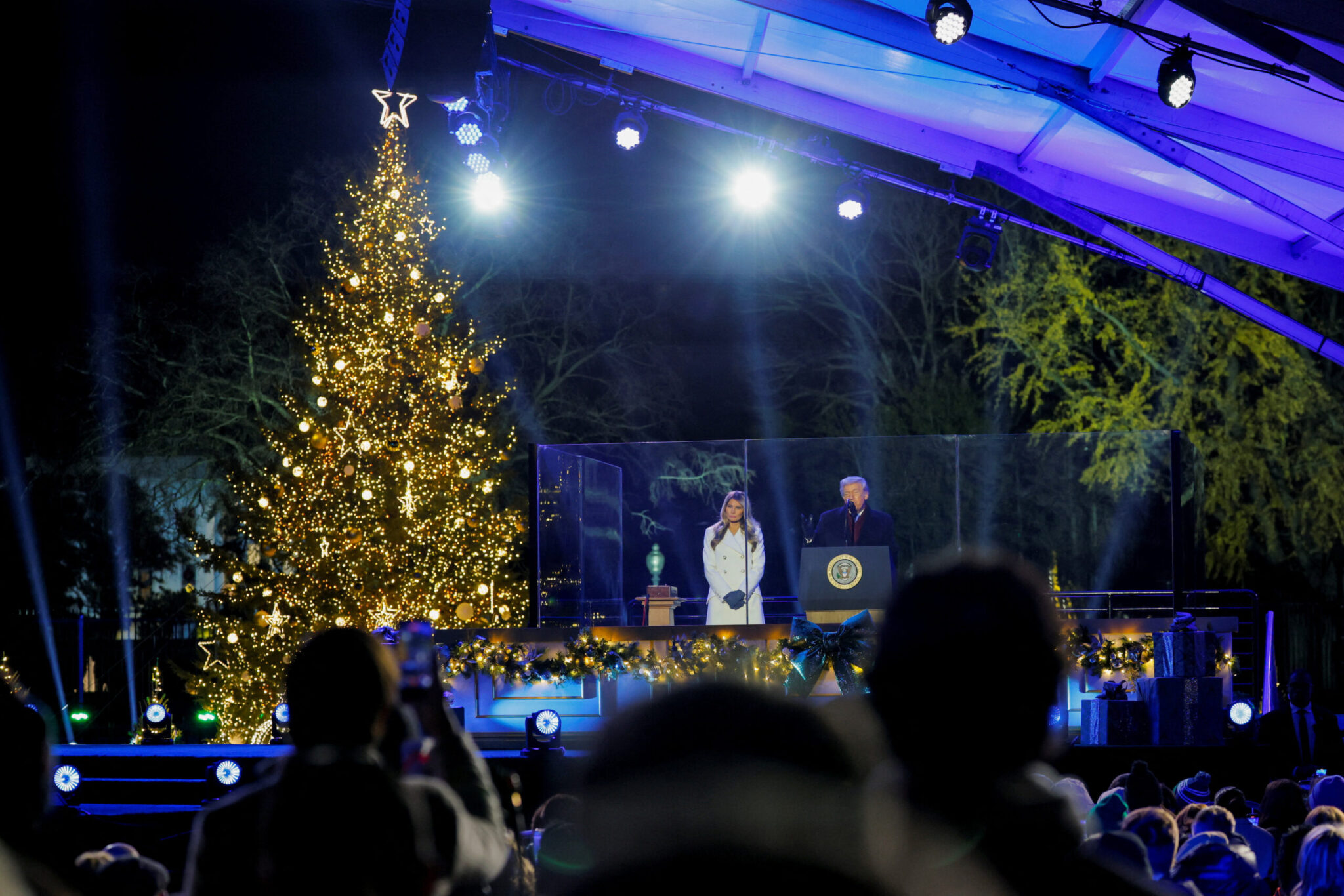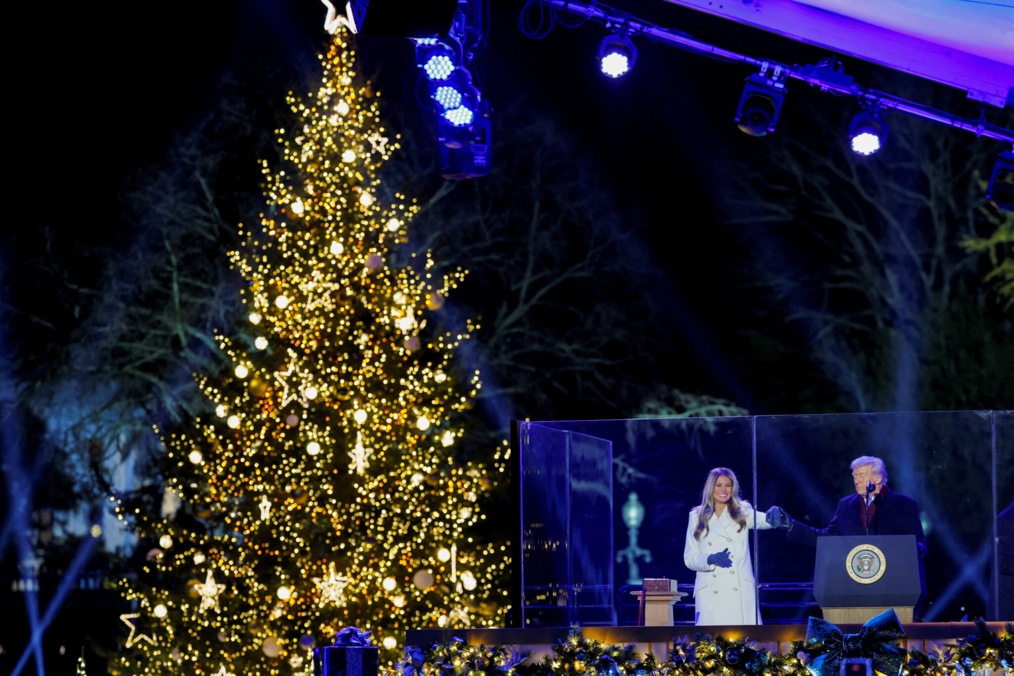 Σε μια βραδιά με χαμηλές θερμοκρασίες αλλά υψηλό συμβολισμό, ο πρόεδρος των ΗΠΑ Ντόναλντ Τραμπ και η σύζυγός του, Μελάνια Τραμπ, κήρυξαν επίσημα την έναρξη της χριστουγεννιάτικης περιόδου, ανάβοντας το Εθνικό Χριστουγεννιάτικο Δέντρο στο πάρκο Ellipse, ακριβώς νότια του Λευκού Οίκου πίσω από προστατευτικό πλέξιγκλας για ευνόητους λόγους.