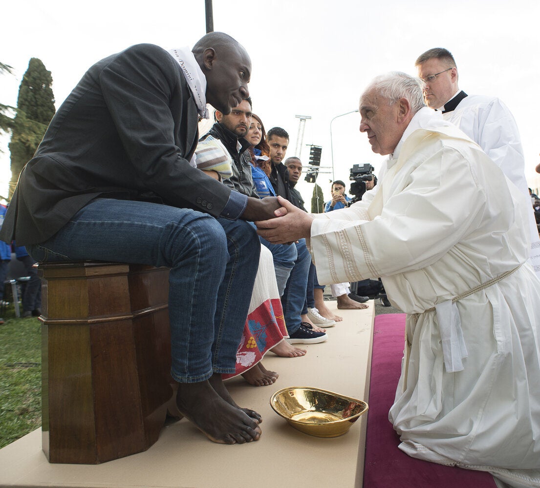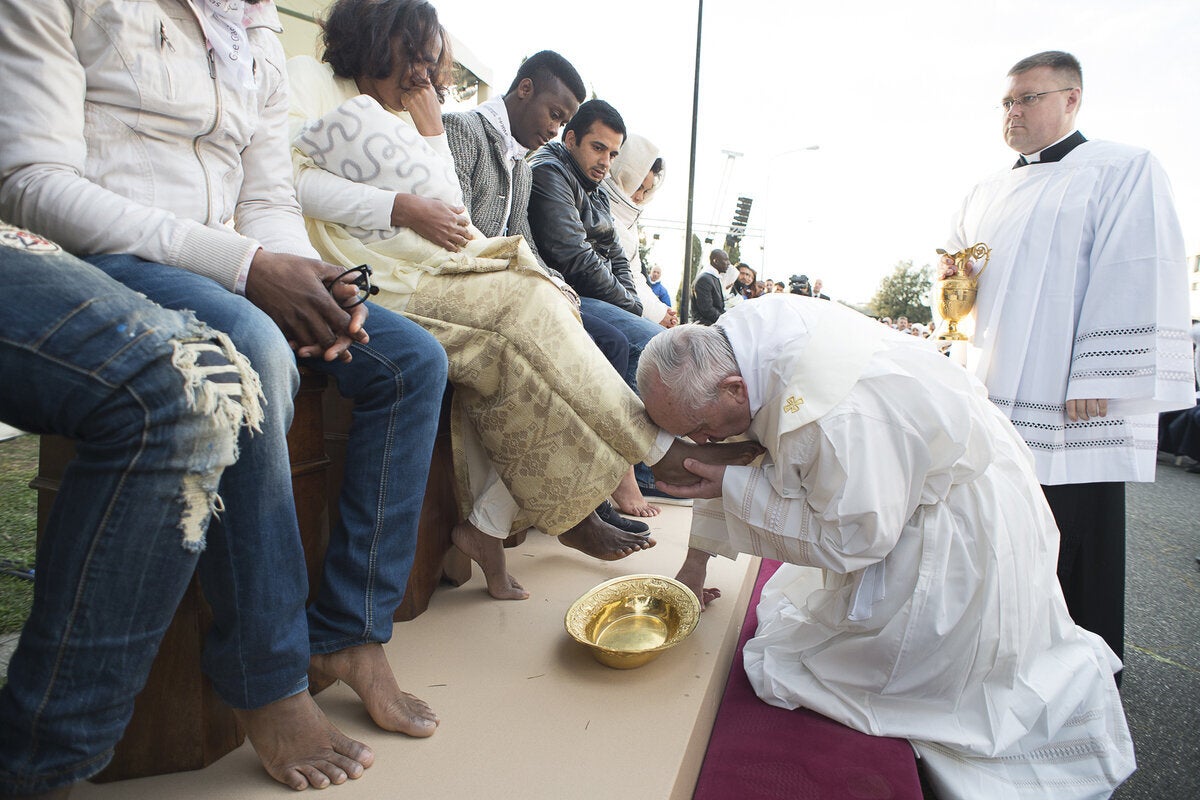 Η τελετή πραγματοποιήθηκε σε κέντρο μεταναστών – στο Castelnuovo di Porto – έξω από τη Ρώμη ενώ μεταξύ των προσφύγων ήταν μουσουλμάνοι, κόπτες χριστιανοί, ινδουιστές, καθολικοί. Τέσσερις γυναίκες και οκτώ άνδρες- ενώ μια μητέρα κρατούσε το μωρό της αγκαλιά. Και οι περισσότεροι, βλέποντας τον Πάπα να γονατίζει, να πλένει και να φυλά τα πόδια τους, δεν άντεξαν και δάκρυσαν.