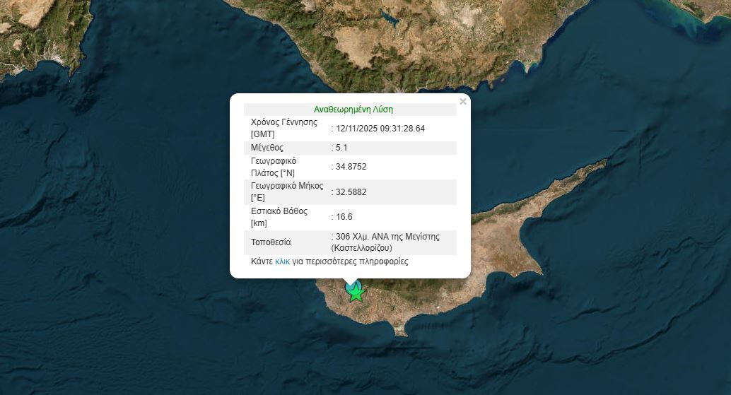 Αρκετά ισχυρός ήταν ο σεισμός που ταρακούνησε το πρωί της Τετάρτης (12/11) την Κύπρο και ανάγκασε αρκετούς πολίτες στην Πάφο να βγουν «πανικόβλητοι» στους δρόμους.