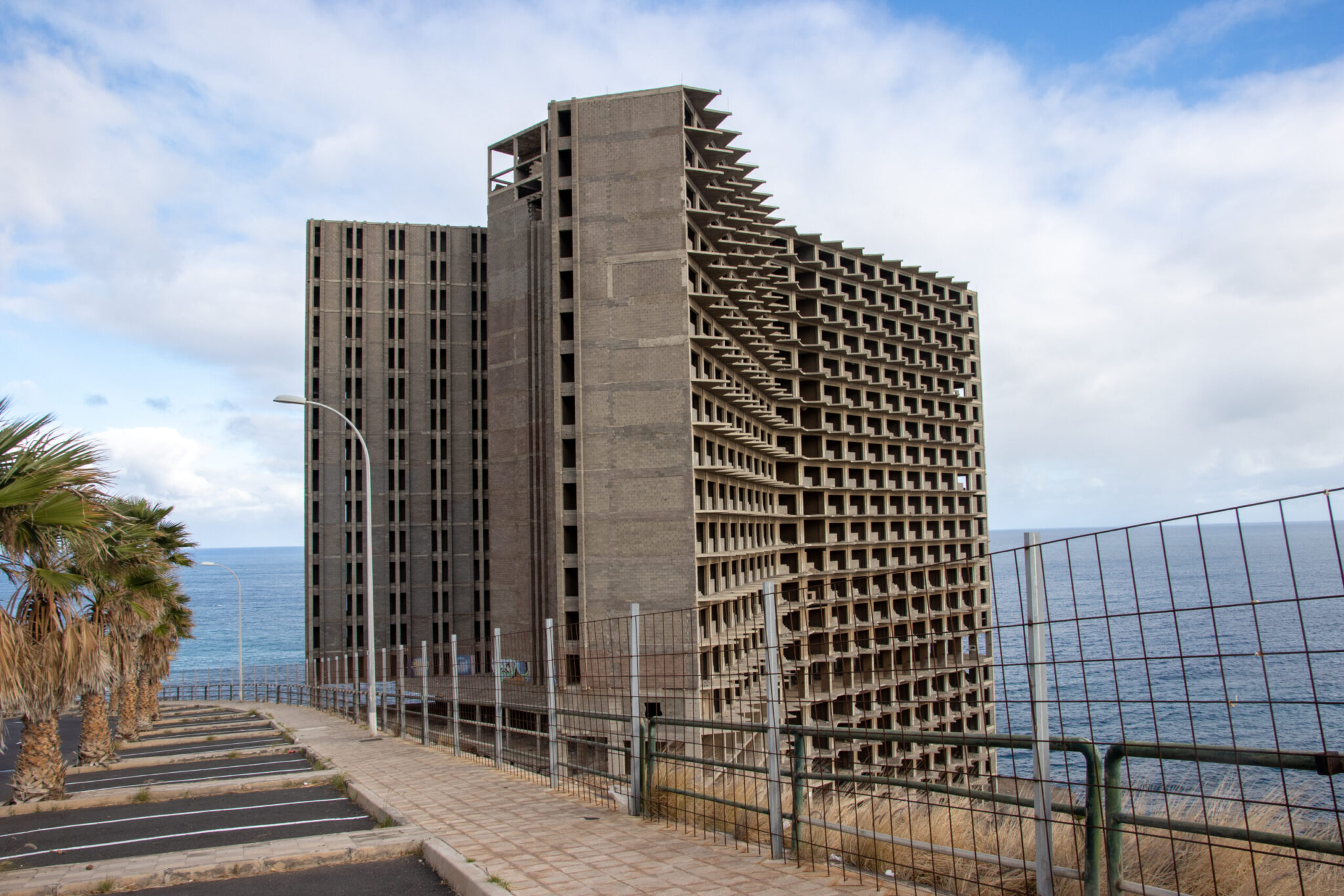 Το 22όροφο κτίριο, που κατασκευάστηκε για πρώτη φορά το 1973, είναι ένα από τα πιο γνωστά εγκαταλελειμμένα κτίσματα στα Κανάρια Νησιά – όχι μόνο για την απόκοσμη εμφάνισή του, αλλά και για τη σκοτεινή ιστορία πέντε ζωών που χάθηκαν εντός του, σύμφωνα με τη Daily Mail.