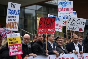 Σημειώνεται ότι κατά τη διάρκεια της τρίωρης συζήτησης, έξω από τη Βουλή δεκάδες πολίτες πραγματοποιούσαν διαμαρτυρία εναντίον του Μπόρις Τζόνσον.