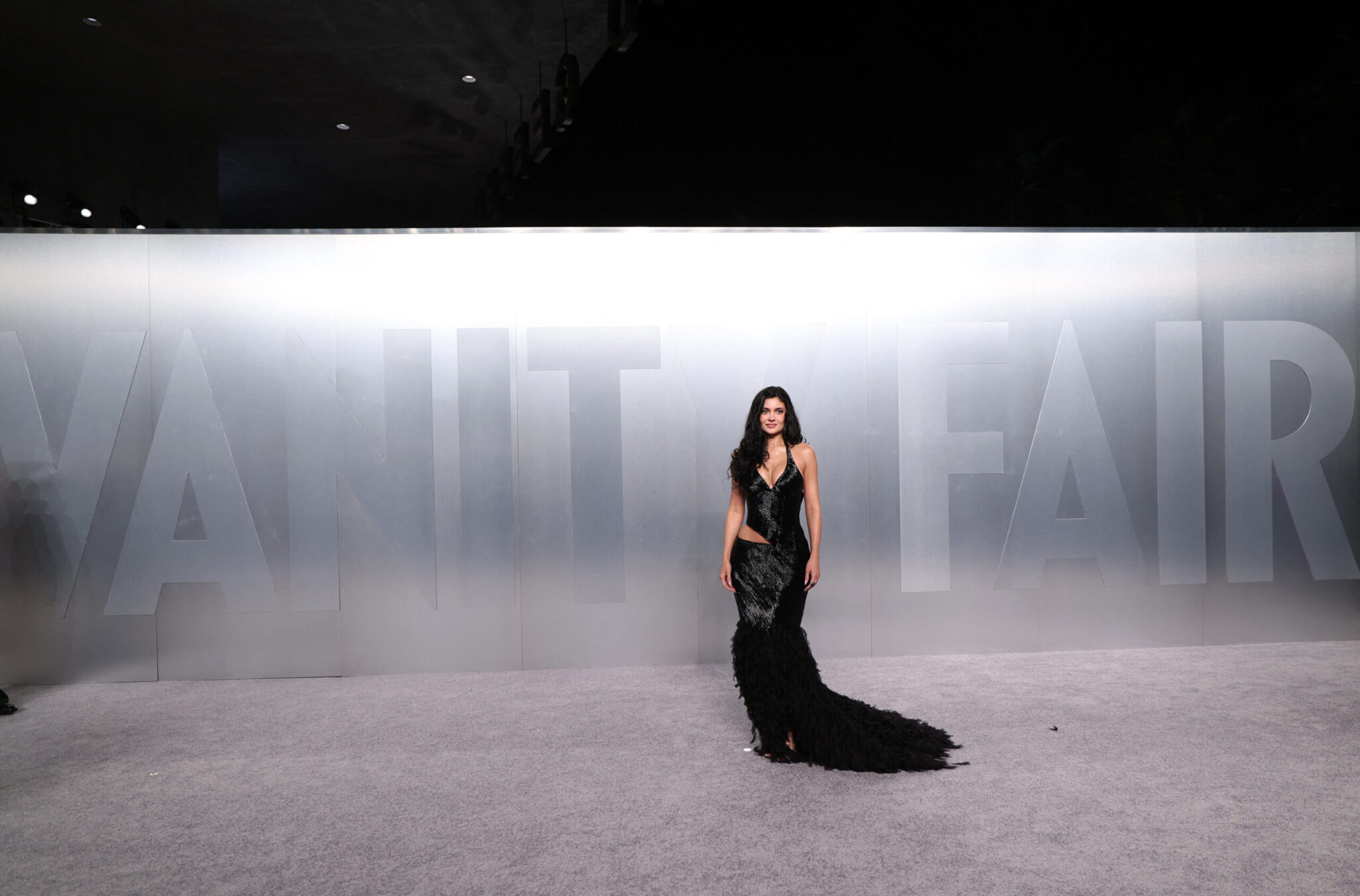 Τα κατάμαυρα μαλλιά της Kάιλι ήταν πιασμένα πίσω σε ένα κομψό χτένισμα με μπούκλες που πλαισίωναν το πρόσωπό της, ενώ το μακιγιάζ της αποπνέει απαλή γοητεία, χάρη στα smoky eyes, τα λαμπερά ζυγωματικά και τα nude χείλη.