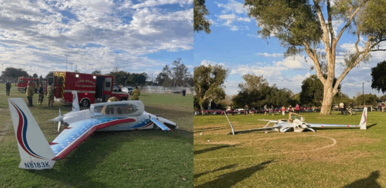 Το μικρό αεροπλάνο είχε αναχωρήσει το απόγευμα της Τρίτης από το Κόμπτον και κατευθυνόταν περίπου 120 χλμ. νοτιοανατολικά προς την French Valley πριν χρειαστεί να κάνει στροφή λόγω μηχανικής βλάβης και να επιχειρήσει αναγκαστική προσγείωση περίπου στις 16:00 τοπική ώρα σε ένα από τα γήπεδα ποδοσφαίρου του πάρκου Χάρτγουελ στο Λονγκ Μπιτς, όπως ανακοίνωσε η Πυροσβεστική Υπηρεσία.