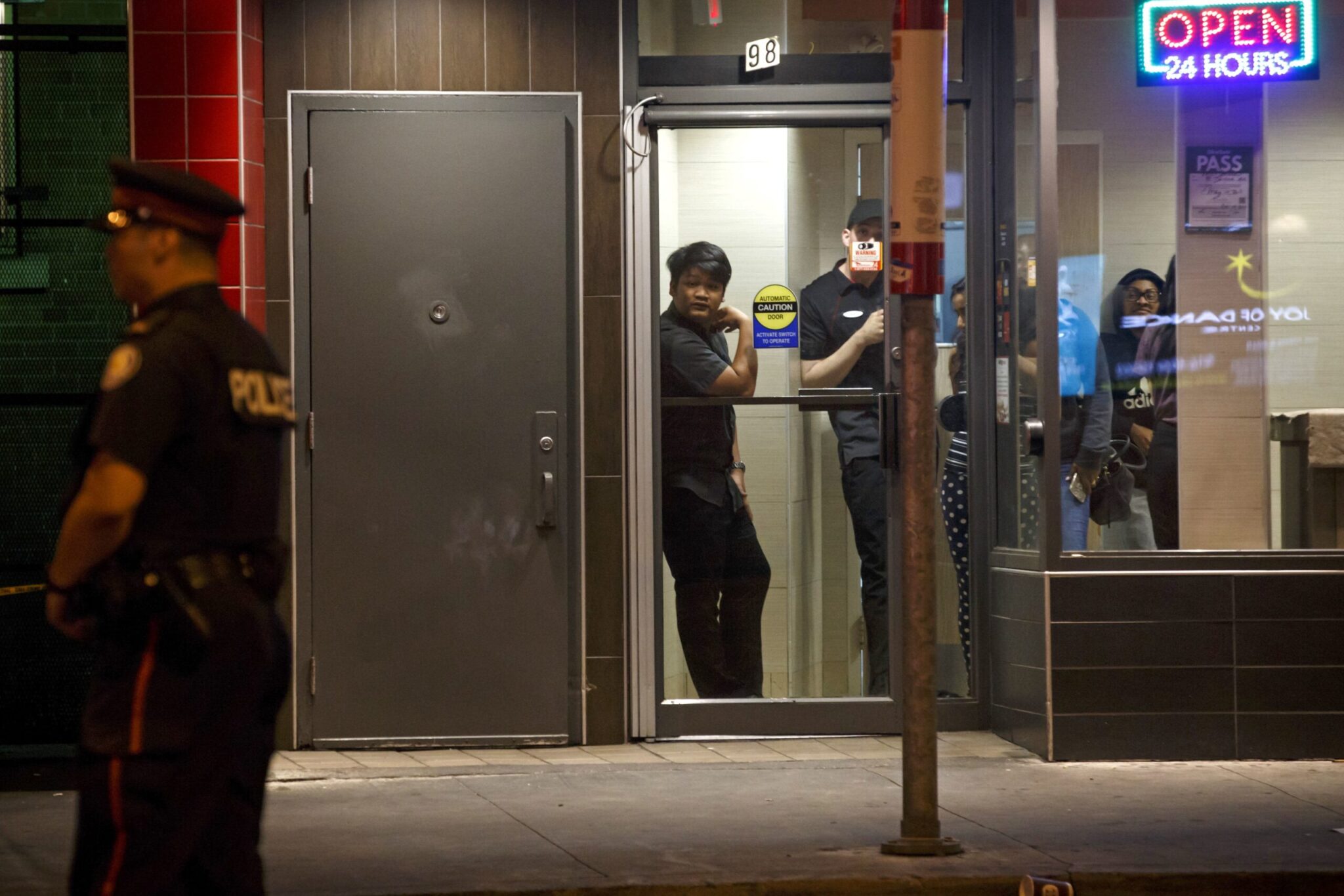 Τραυματιοφορείς, πυροσβέστες και αστυνομικοί έσπευσαν μαζικά στη Greektown του Τορόντο, στο ανατολικό τμήμα της πόλης. Η αστυνομία ανέφερε ότι ο δράστης της επίθεσης χρησιμοποίησε πιστόλι. Ο άνδρας, περίπου 30 ετών, σκοτώθηκε σε ανταλλαγή πυρών με αστυνομικούς.