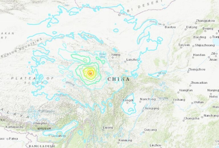 Ισχυρότατος σεισμός μεγέθους 7,4 Ρίχτερ έπληξε την επαρχία Τσινγκάι της Κίνας, σύμφωνα με το Γερμανικό Ερευνητικό Κέντρο για Γεωεπιστήμες (GFZ).