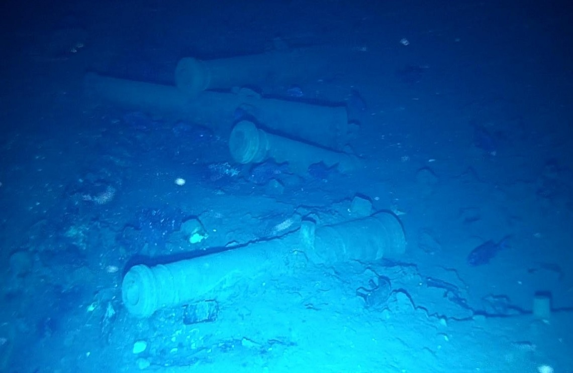 Oι εικόνες ενός κανονιού, τριών νομισμάτων και ενός πορσελάνινου κυπέλλου, είναι ανάμεσα στις πρώτες μεταξύ των ανεκτίμητων θησαυρών του «Άγιου Δισκοπότηρου» των ναυαγίων στα ανοικτά των ακτών της Κολομβίας, που ανασύρθηκαν την περασμένη εβδομάδα από την άκρως απόρρητη τοποθεσία τους.