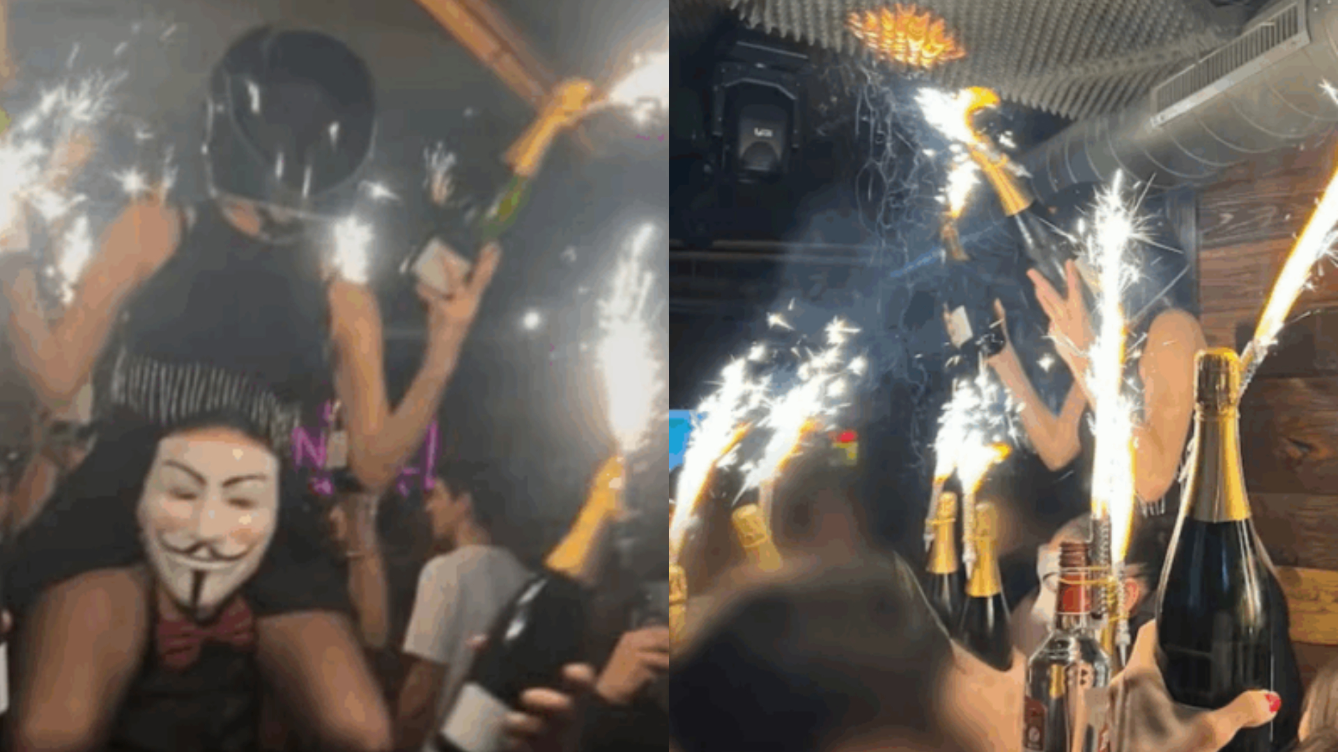 Ακολούθησε το καθιερωμένο σόου: Οι υπάλληλοι φορούν μάσκες, ανάβουν όλα τα πυροτεχνήματα εσωτερικού χώρου «ταυτόχρονα», βάζουν τη μουσική που ζήτησαν οι πελάτες. «Νομίζω ότι ήμασταν επτά ή οκτώ άτομα με τα μπουκάλια» είπε η Λουίζ. Μπροστά βρισκόταν η Σιάν, ανεβασμένη στους ώμους του Μάθιου, όπως είχε κάνει και στο παρελθόν.
