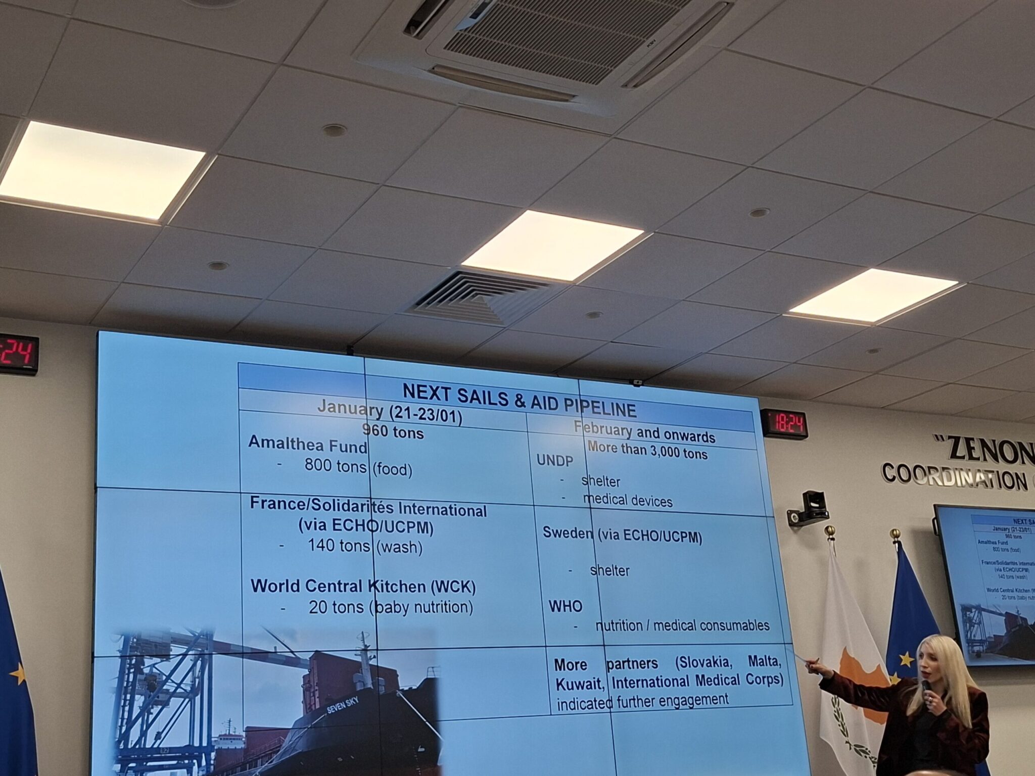 Η κ. Σαμπός τόνισε ότι η πρωτοβουλία βασίζεται στη διαφάνεια, στον αυστηρό έλεγχο των φορτίων και στη στενή συνεργασία με τον ΟΗΕ, την Ευρωπαϊκή Ένωση και διεθνείς εταίρους. Από τον Αύγουστο έως τον Δεκέμβριο του 2025, μέσω του διαδρόμου Amalthea μεταφέρθηκαν πάνω από 5.000 τόνοι ανθρωπιστικής βοήθειας από την Κύπρο στη Γάζα.