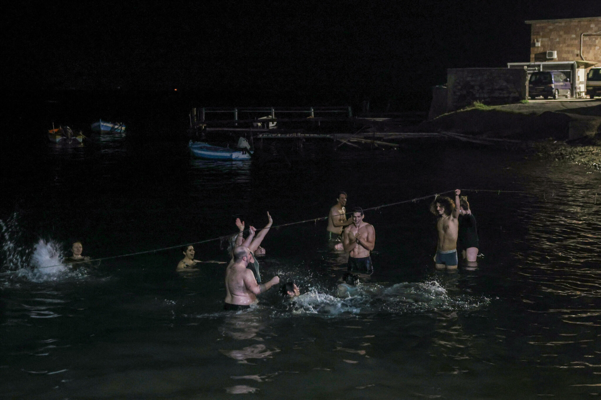 Μερικοί από τους κατηγορούμενους βούτηξαν στη θάλασσα για να γιορτάσουν την ετυμηγορία αργά την Πέμπτη.