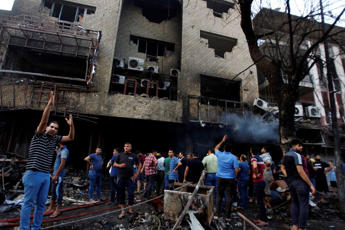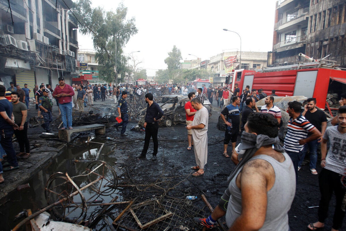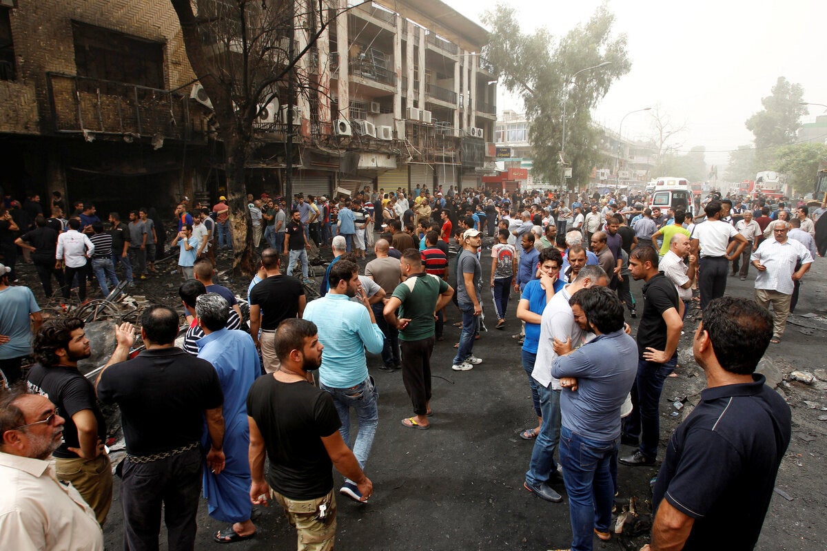 Πολύς κόσμος βρισκόταν στην Καραντά εκείνη τη στιγμή, καθώς οι Ιρακινοί τρώνε έξω και ψωνίζουν μέχρι αργά κατά τον ιερό για τους μουσουλμάνους μήνα του Ραμαντάν, που τελειώνει την επόμενη εβδομάδα με το φεστιβάλ Εΐντ αλ Λιτρ.