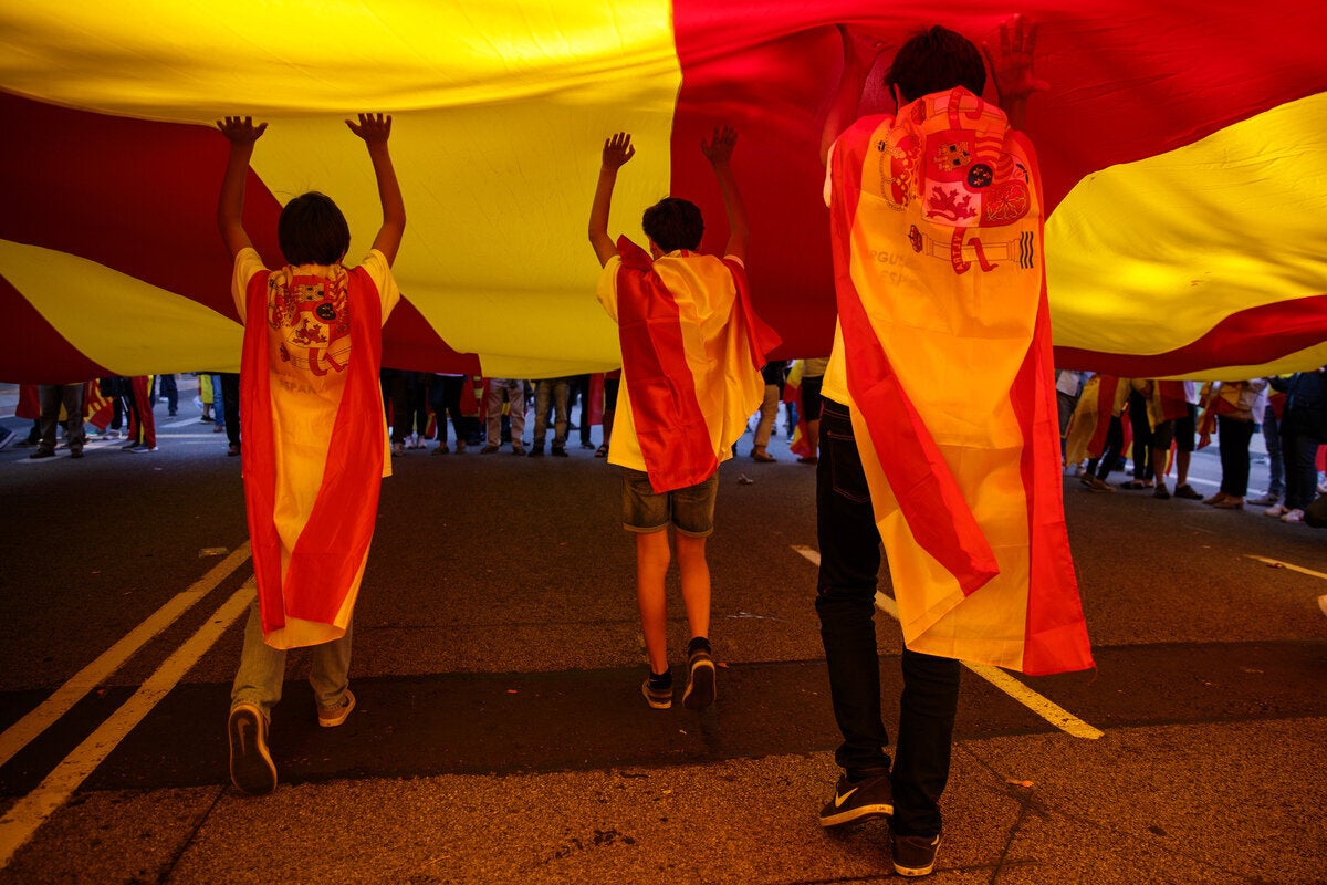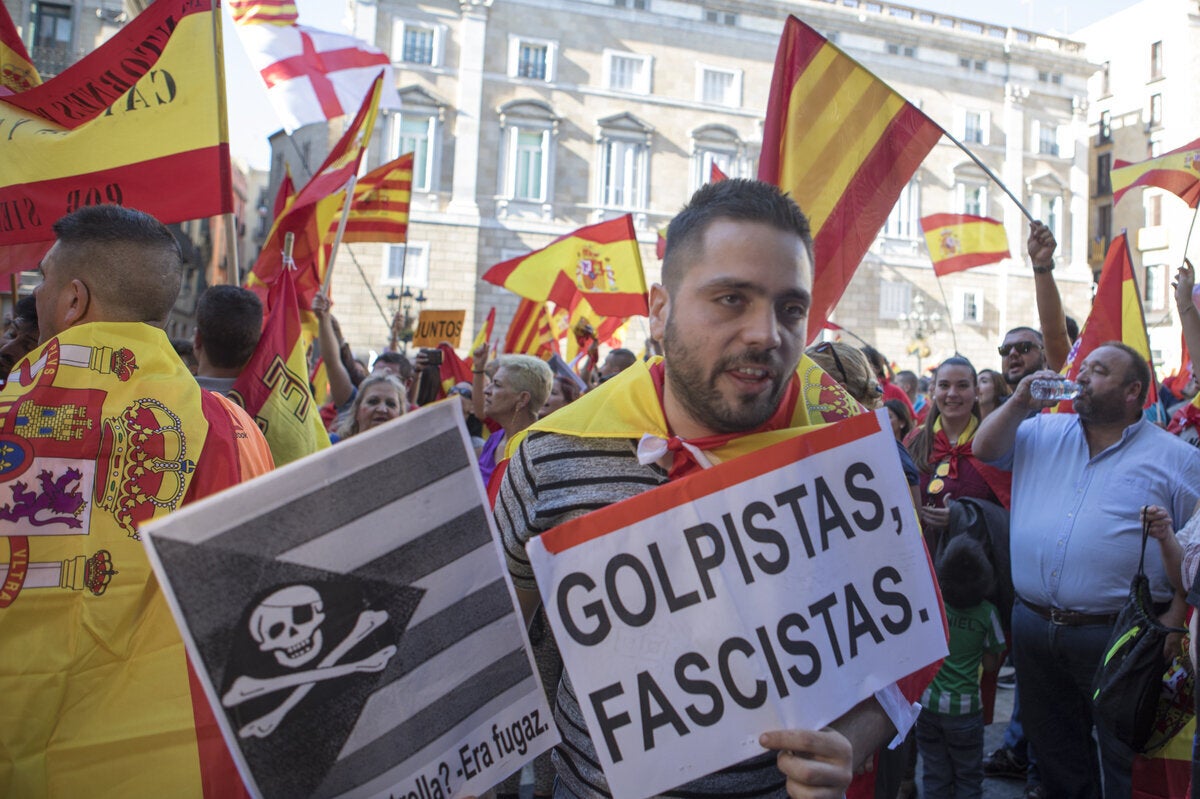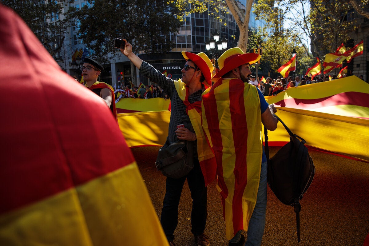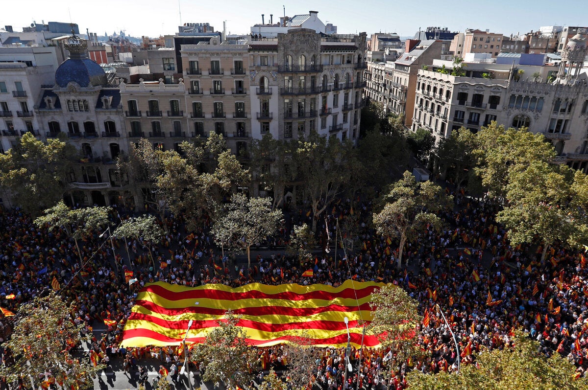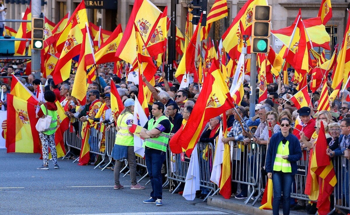 Οι διαδηλωτές κατέκλυσαν μία από τις εμβληματικές λεωφόρους της Βαρκελόνης, την Πασέιγκ ντε Γκράσια, η οποία γέμισε από ισπανικές σημαίες και όπου ακουγόταν το σύνθημα «Πουτζντεμόν, στη φυλακή», μια αναφορά στον αυτονομιστή καταλανό ηγέτη τον οποίο απέπεμψε την Παρασκευή η Μαδρίτη.