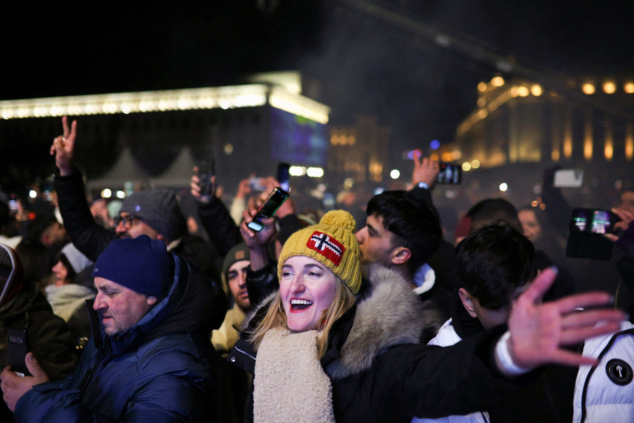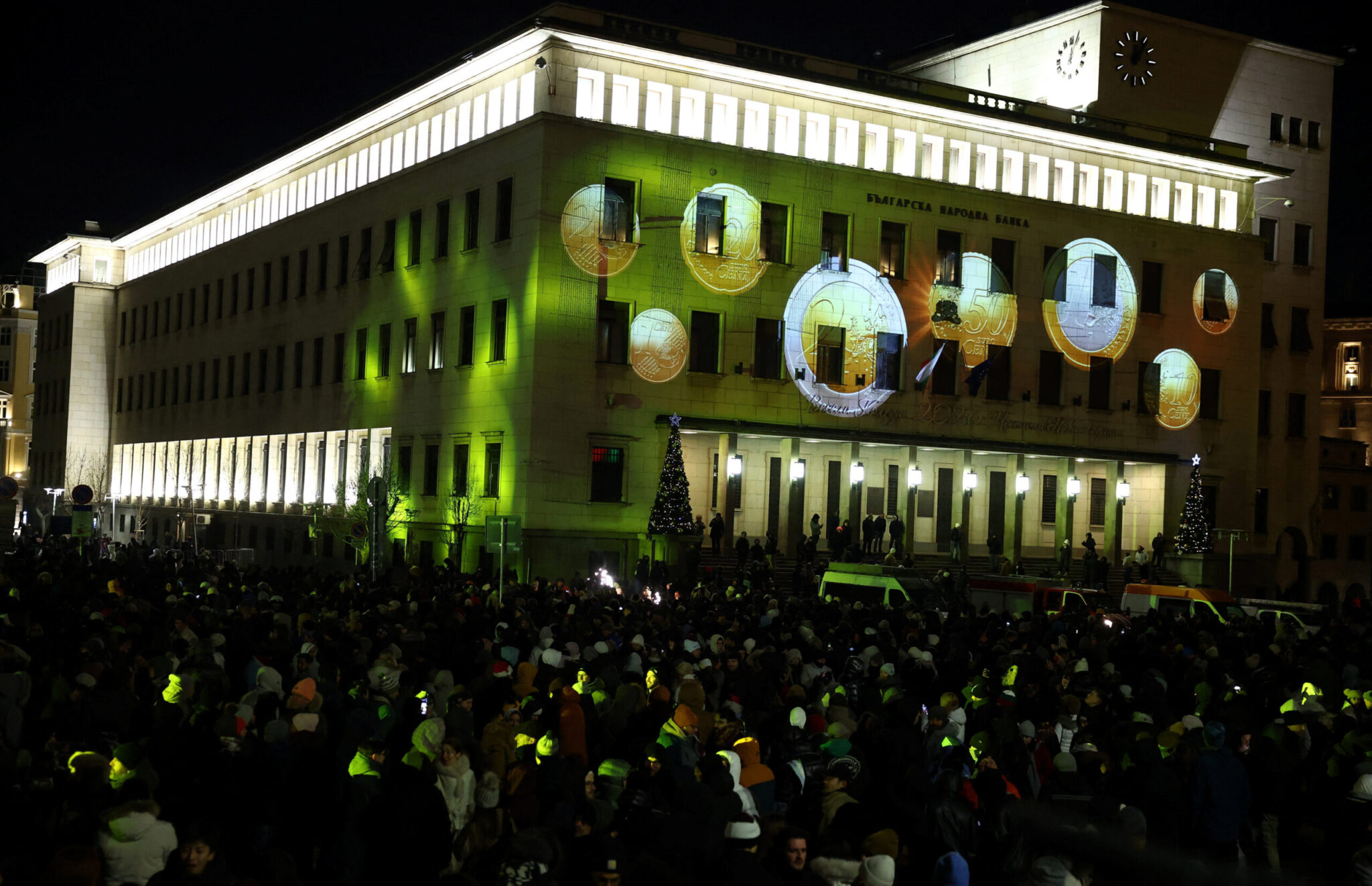 Στη Σόφια, εκατοντάδες πολίτες συγκεντρώθηκαν μπροστά από τη Βουλγαρική Εθνική Τράπεζα για να γιορτάσουν τόσο την έλευση του νέου έτους όσο και την επίσημη υιοθέτηση του ευρώ.