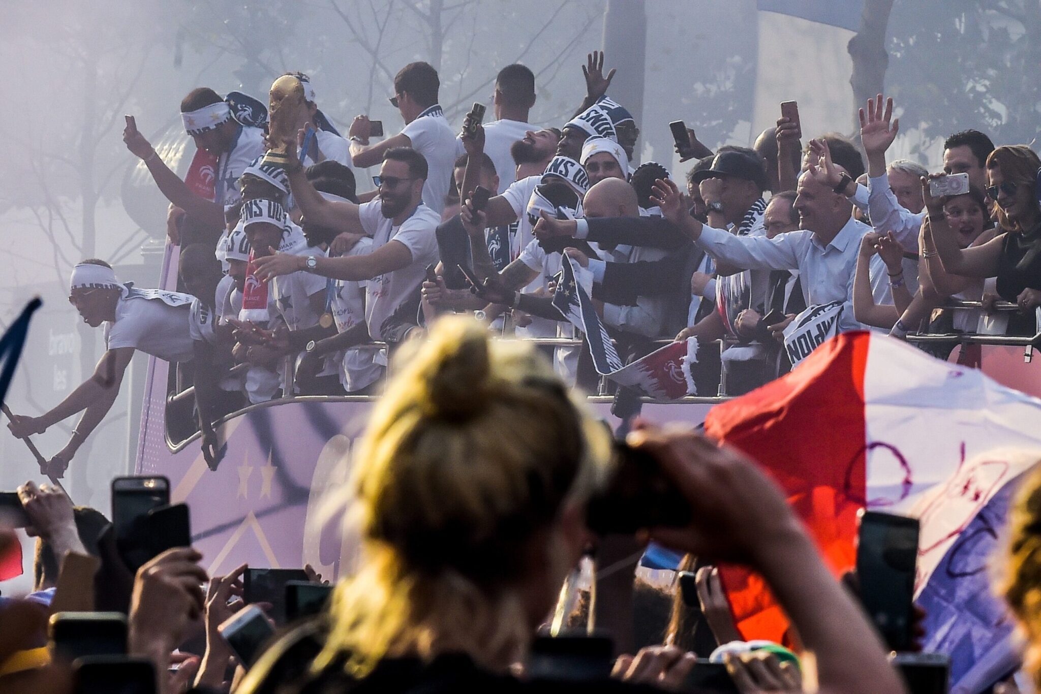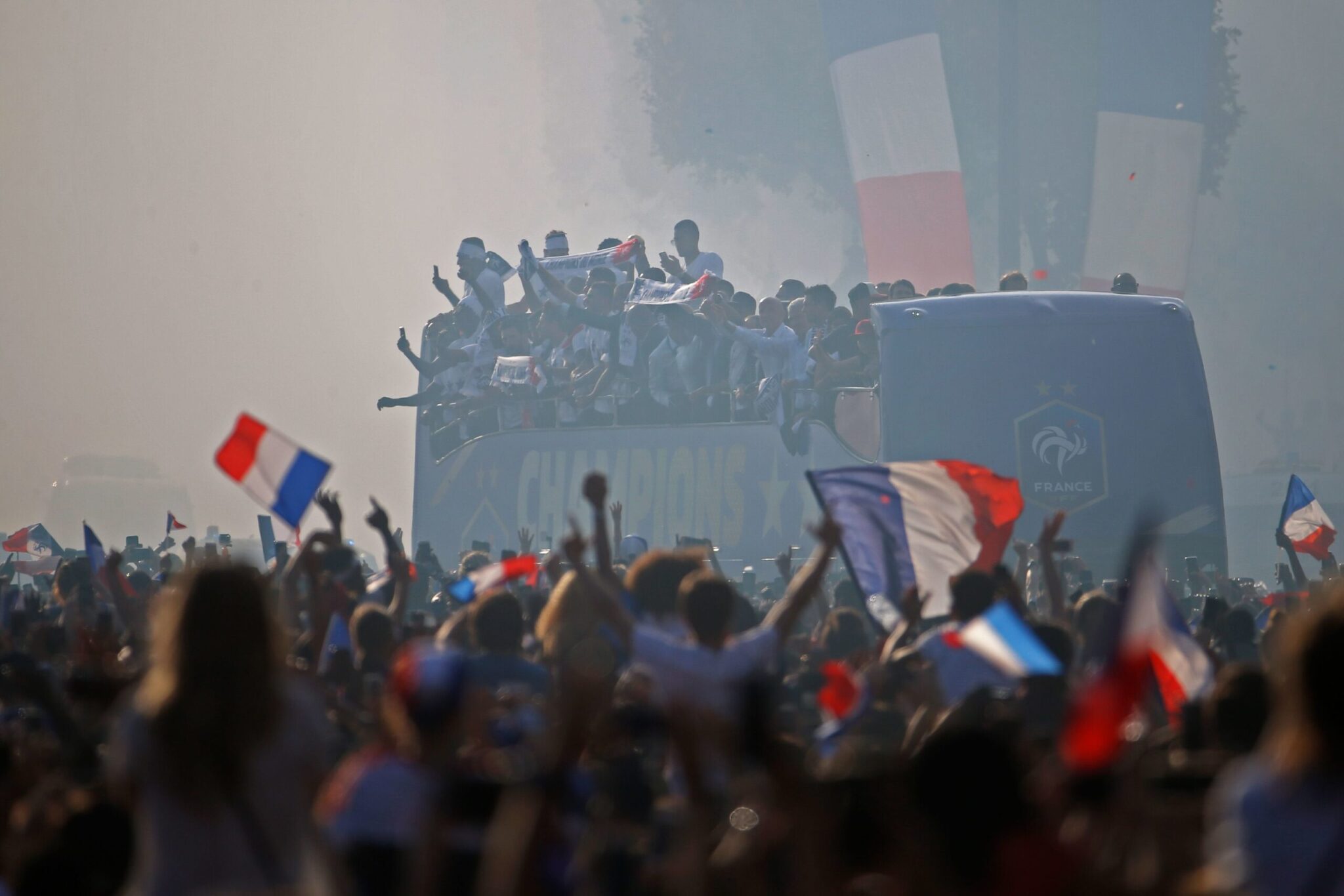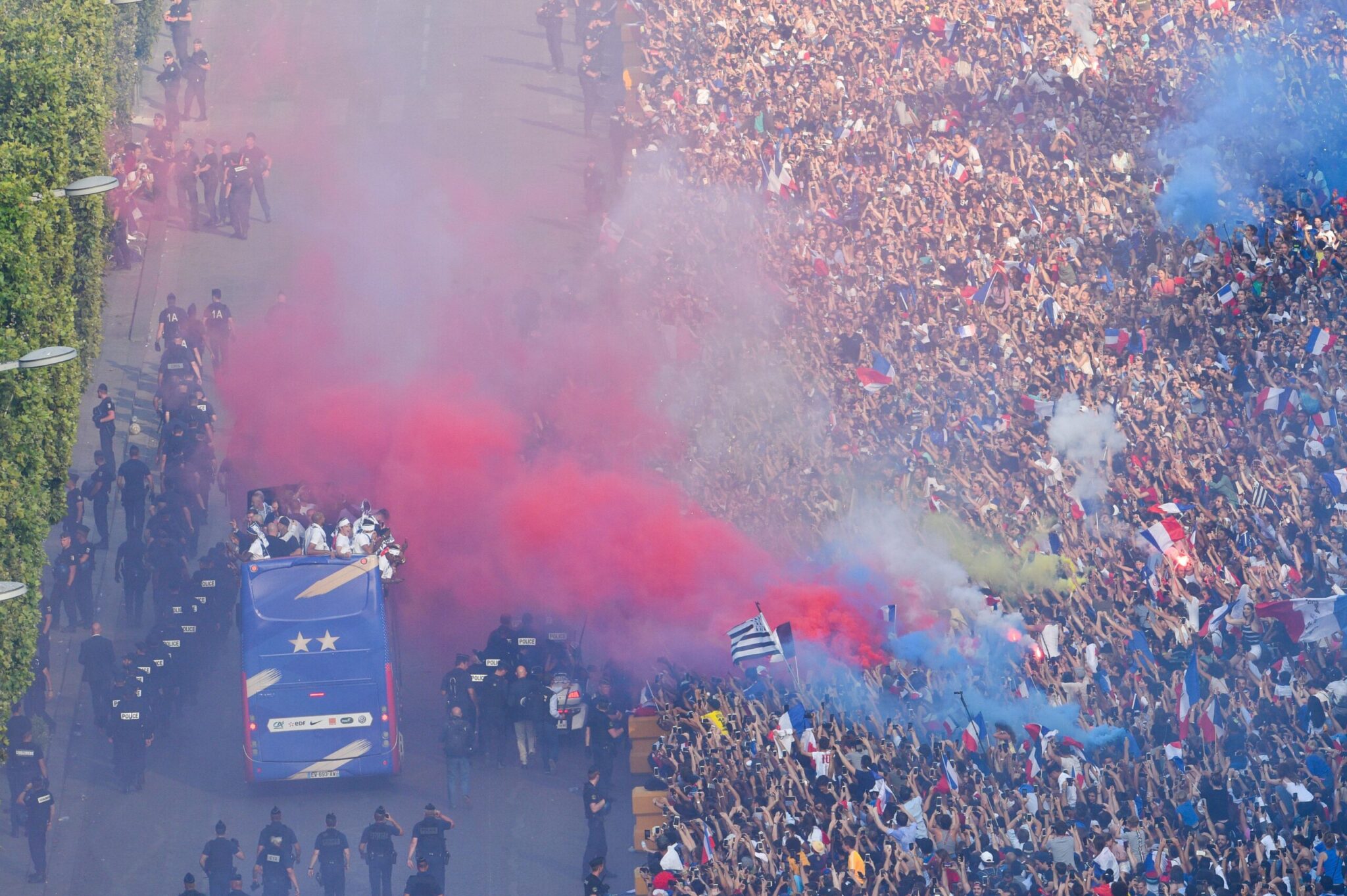 Ακολούθησε ο γύρος του θριάμβου στη Λεωφόρο Σανζ Ελιζέ και ακολούθησε πανδαιμόνιο με τις «τρικολόρ» να υψώνονται και τα βεγγαλικά να ανάβουν.