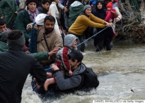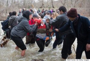 Τα ορμητικά νερά ποταμού που χωρίζει την Ελλάδα από την ΠΓΔΜ πέρασε μεγάλη ομάδα προσφύγων που παρέμεναν εγκλωβισμένοι για πολλές ημέρες στον καταυλισμό της Ειδομένης.